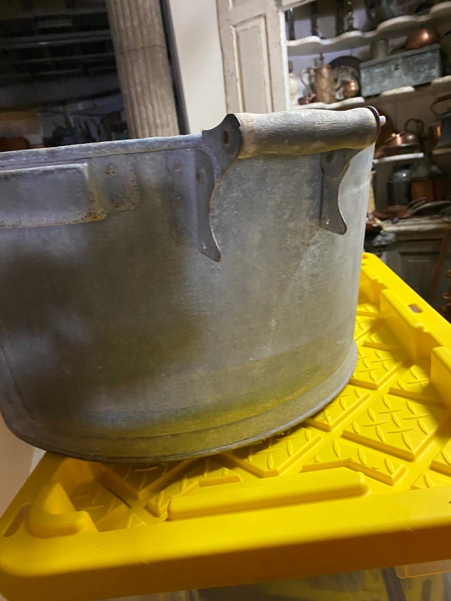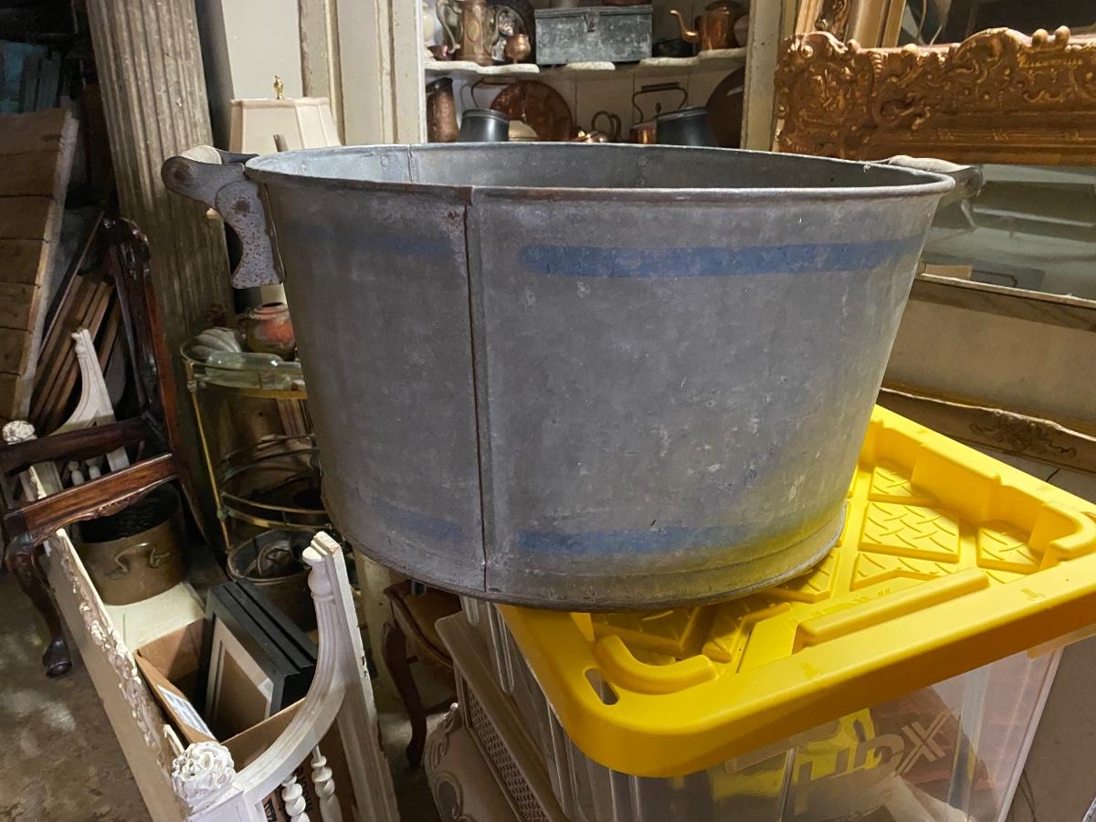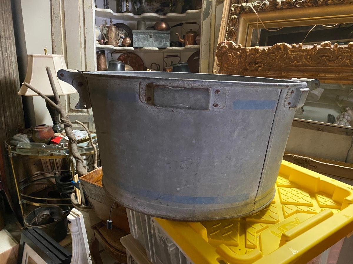Vintage Galvanized Metal Garden Wash Tub Farm Bucket, wood handles