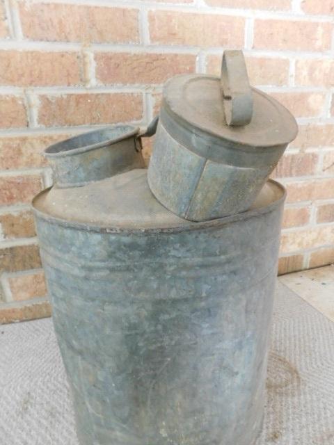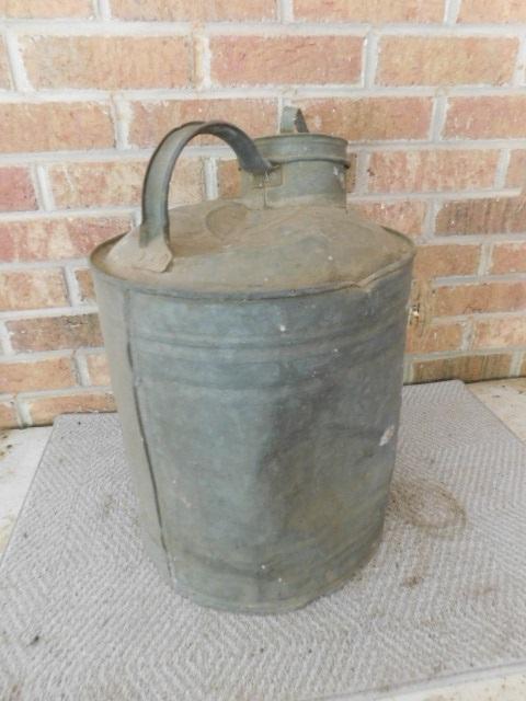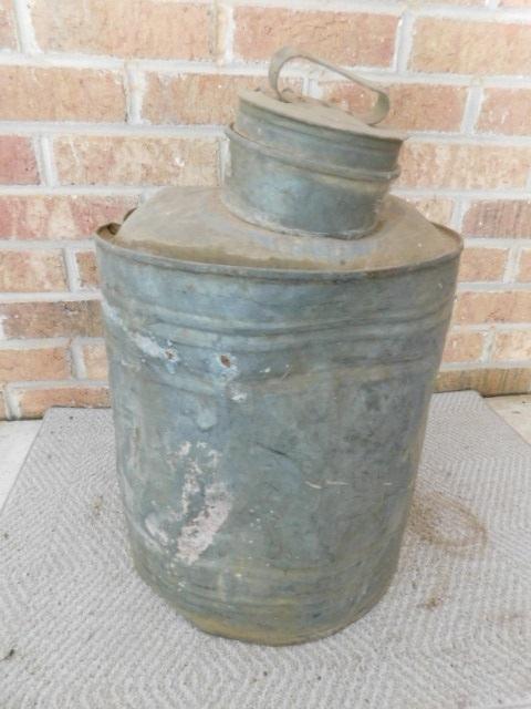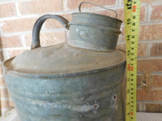 Vintage Galvinized Milk Can with Lid has some denting but no visible holes