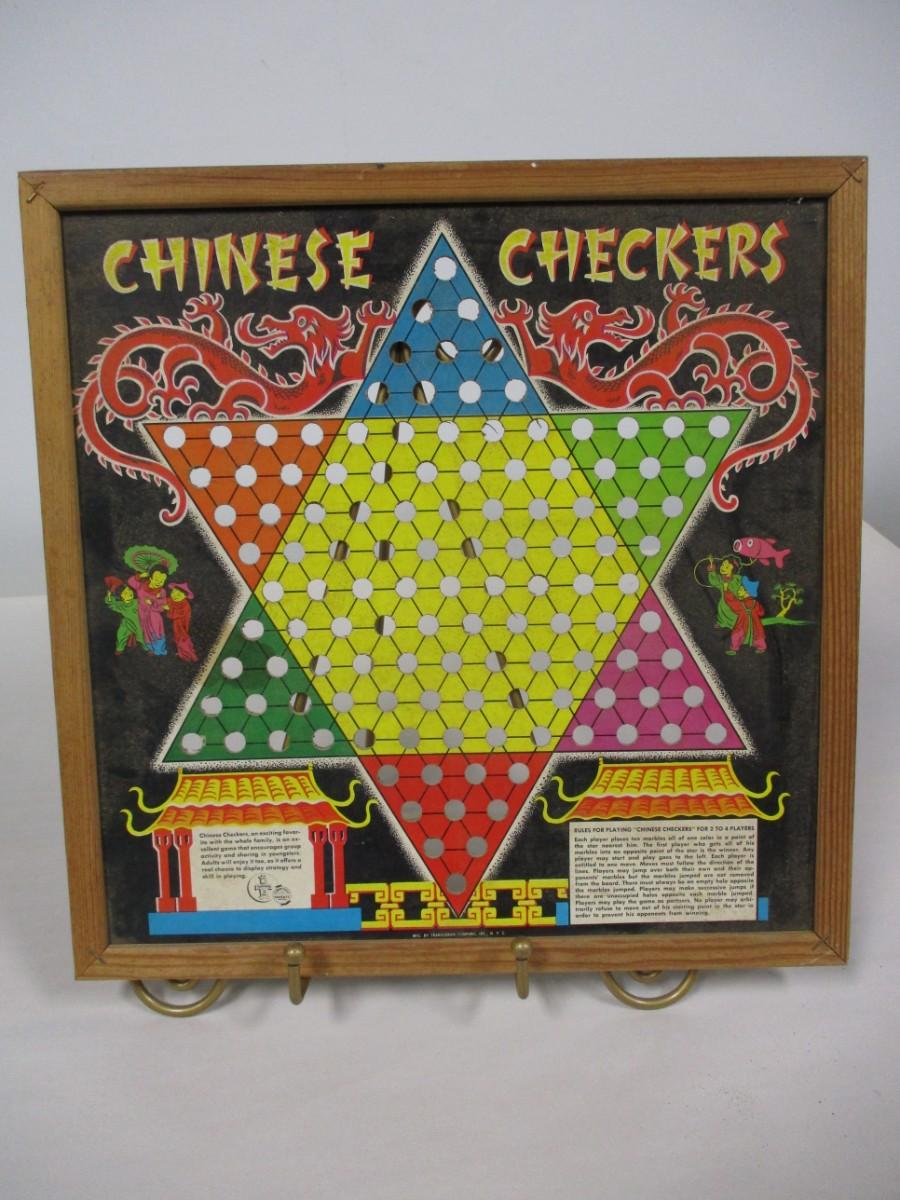 Vintage Chinese Checkers Game Board in Wood Frame