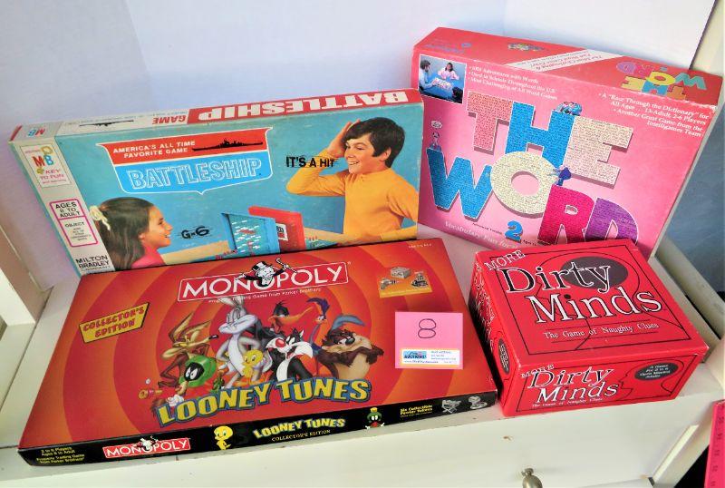 Vintage Games Milton Bradley Battleship (1971) Collector's Edition Looney Tunes Monopoly, The WORD, Dirty Minds