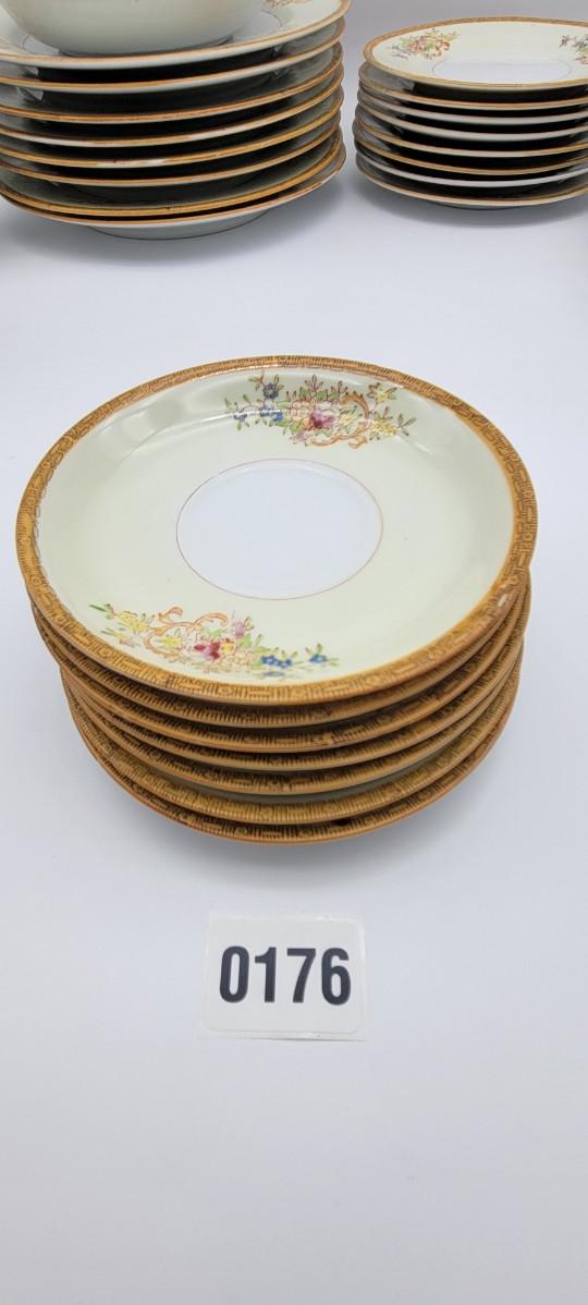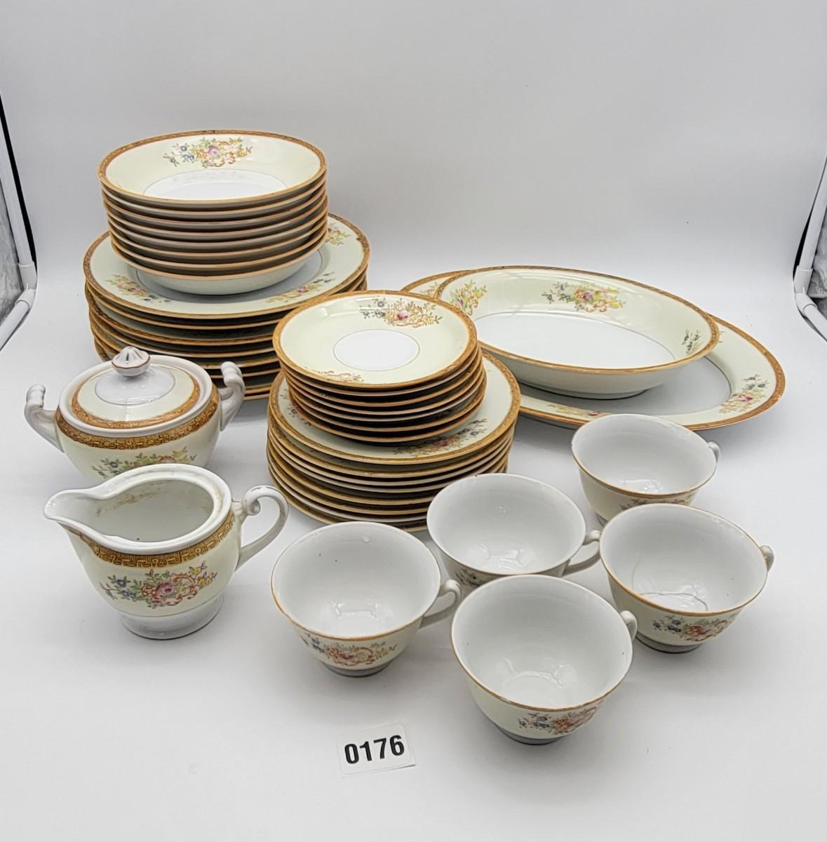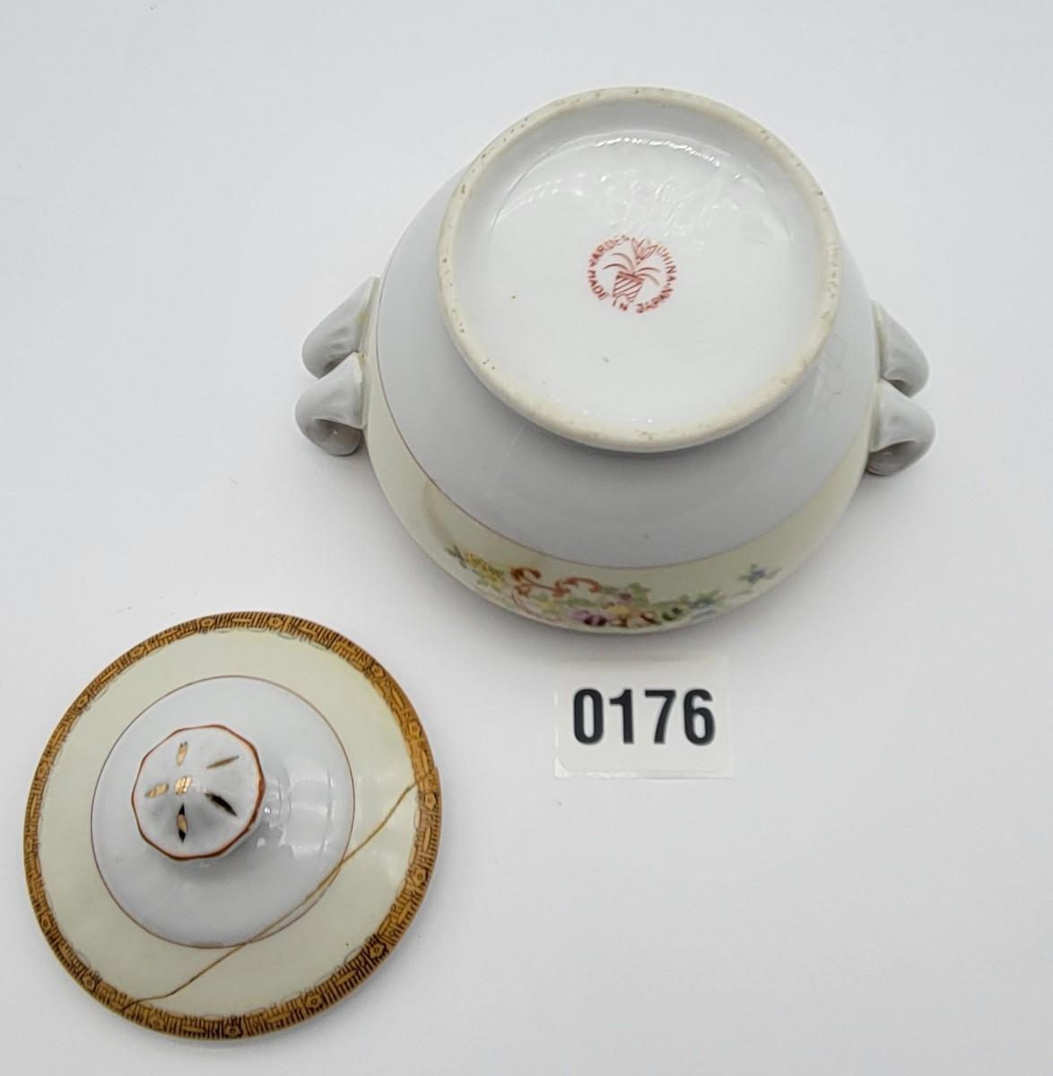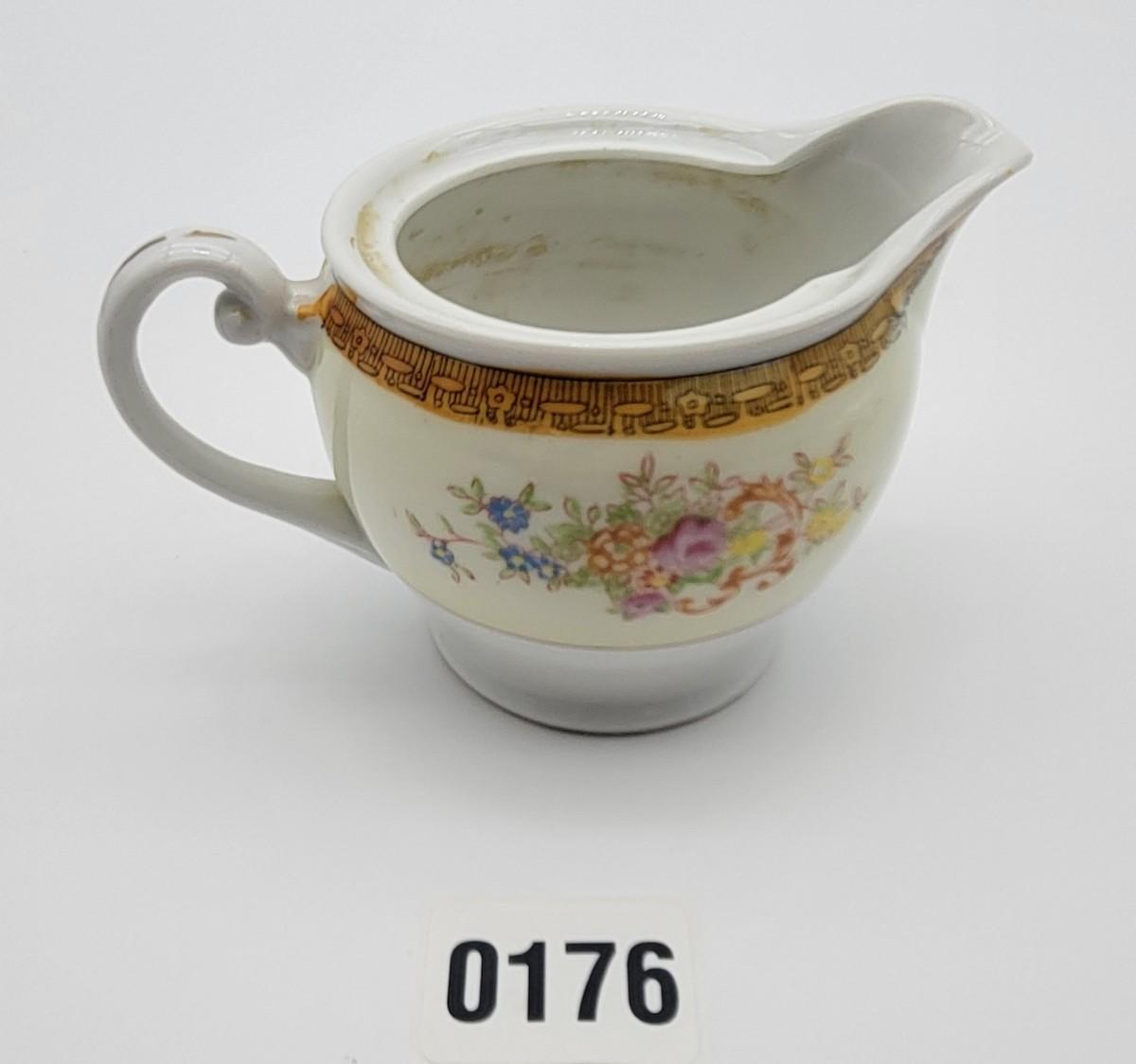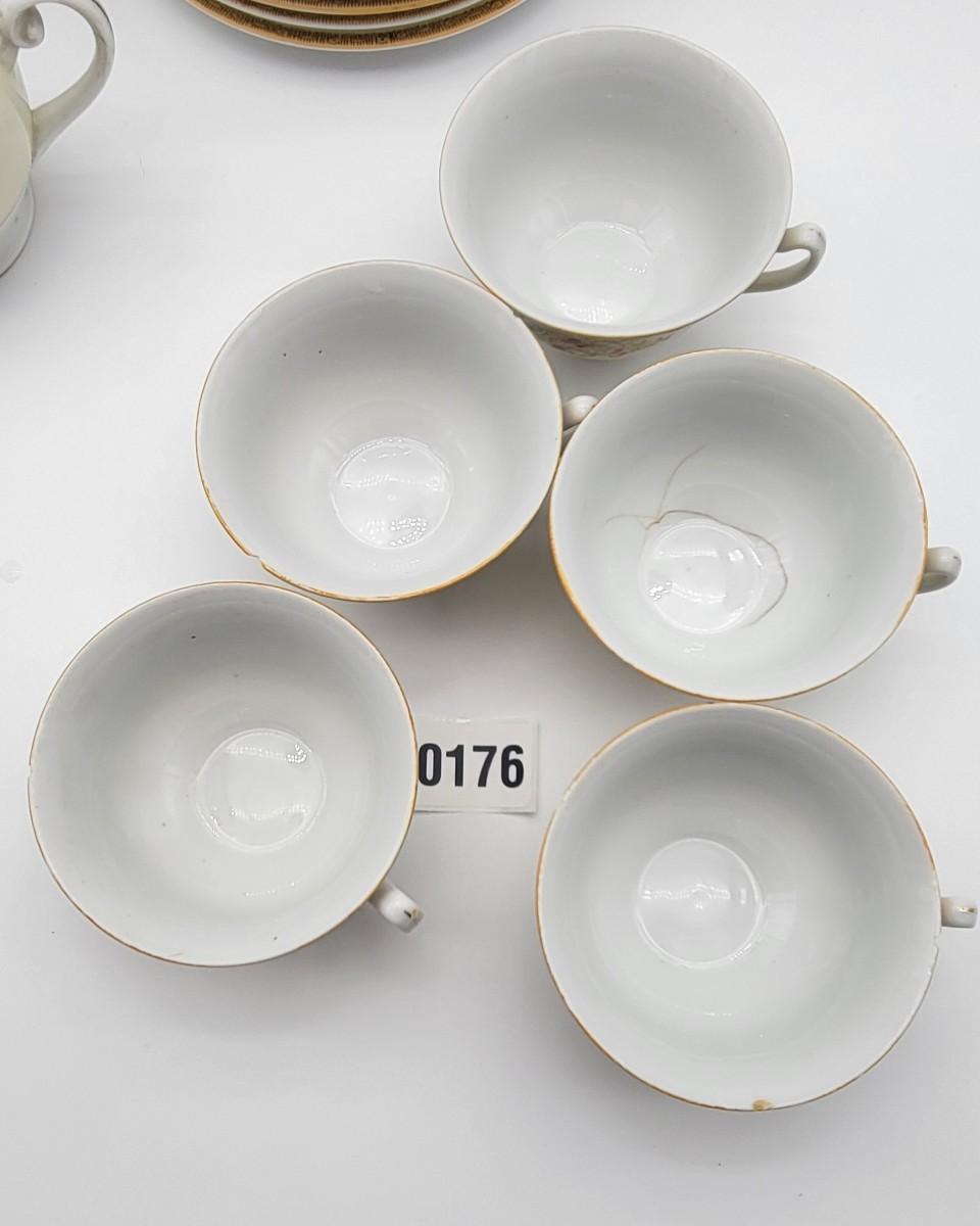 The Sugar dish has prior damage that has been repaired by the seller. The creamer canister does not have a lid.
