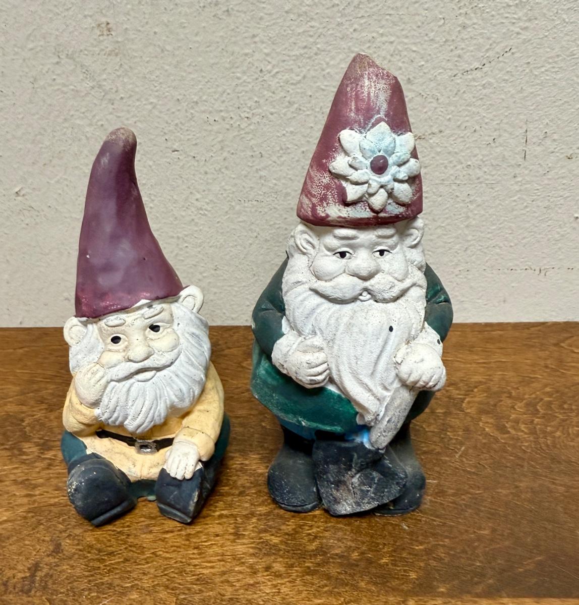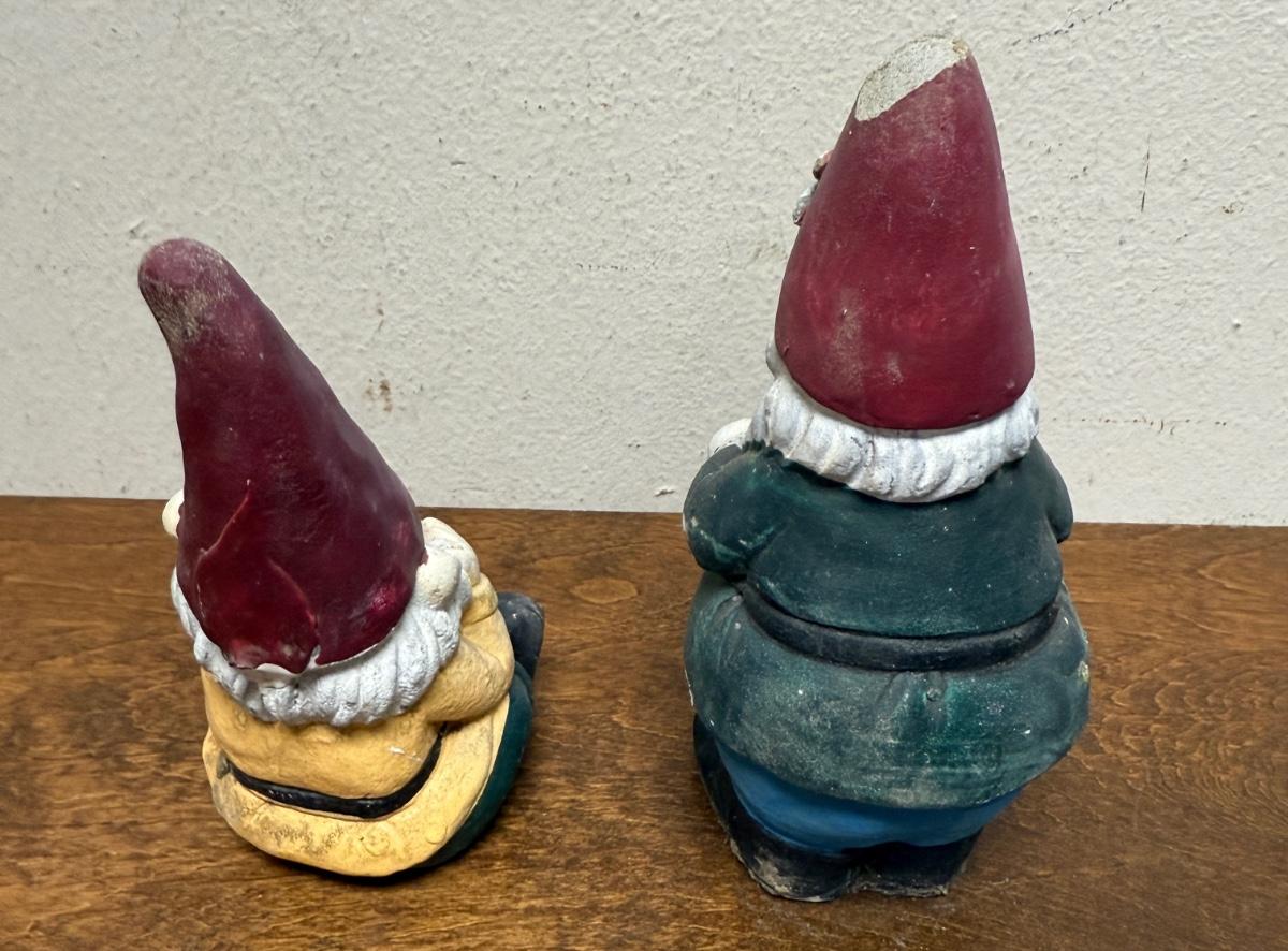 Vintage Garden Gnome Statues Figurine Detailed Raised Relief Multi Colored Painted Concrete