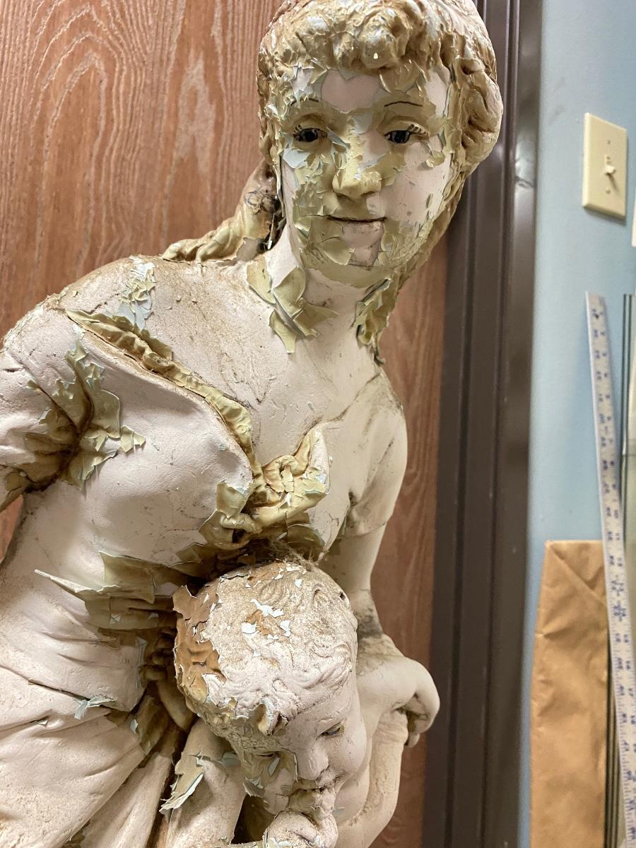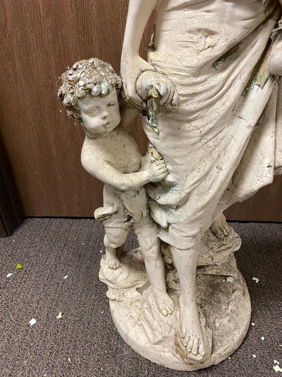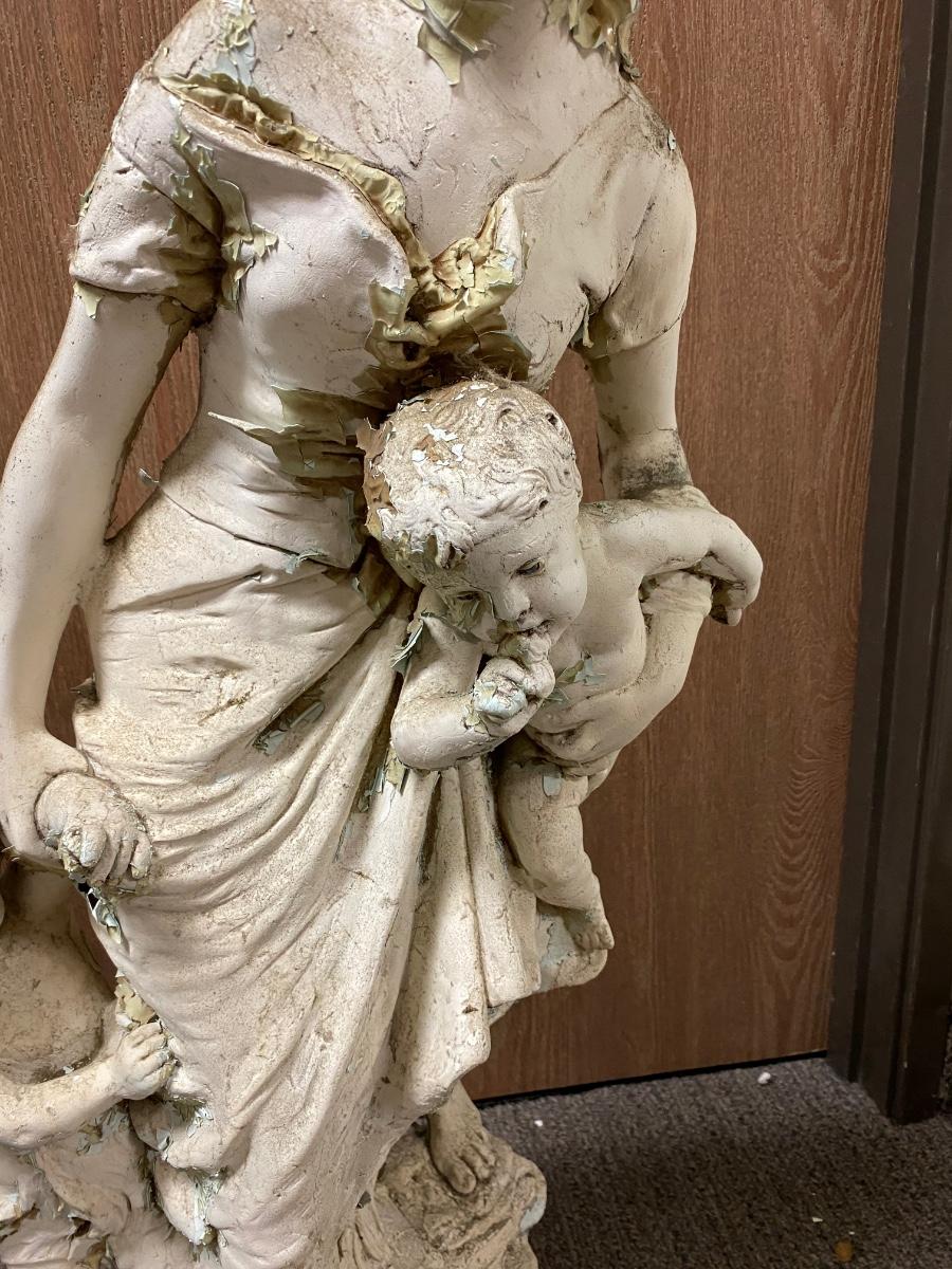 Vintage Garden Yard Art Hollow Plaster Statue Woman with Children