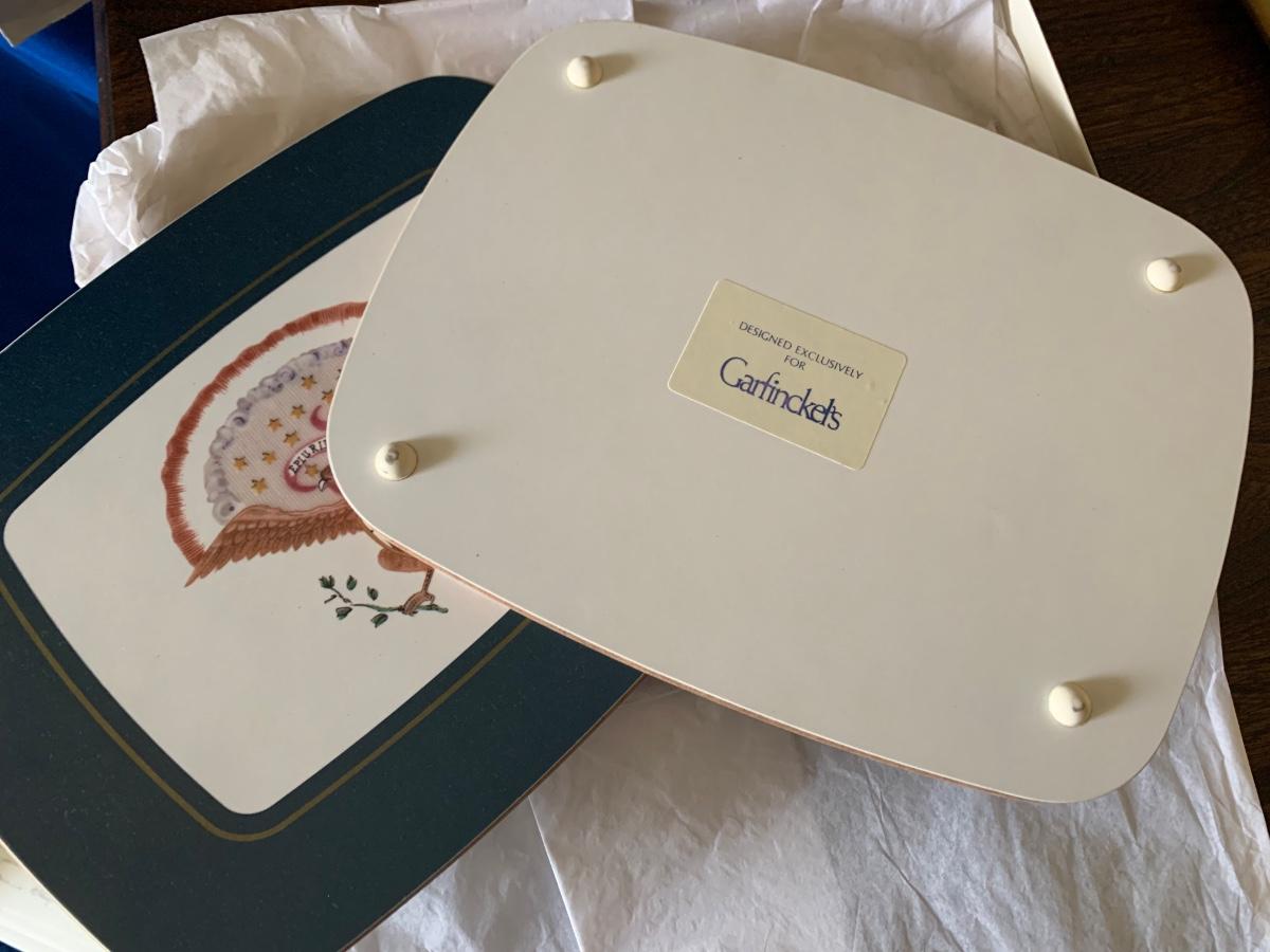 Vintage Garfinkels Footed Placemats / Trivets in box /