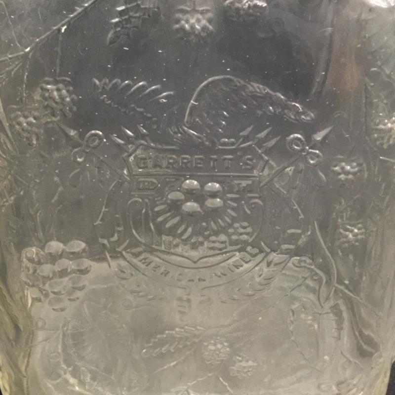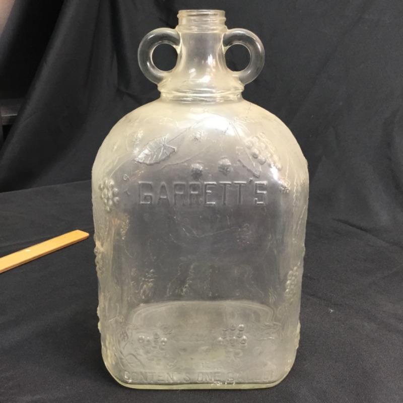 One vintage glass, 1 gallon Garrett’s wine bottle. Overall in excellent condition with only one small chip on the lip of the bottle; see pictures.