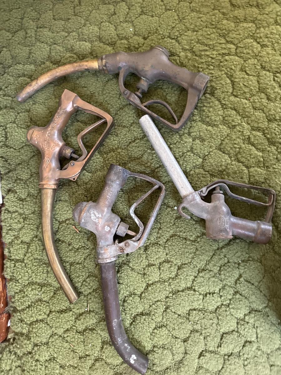 Includes four gas pump nozzles with brands likeBuckeye, OPW Bronzecast and Knappco