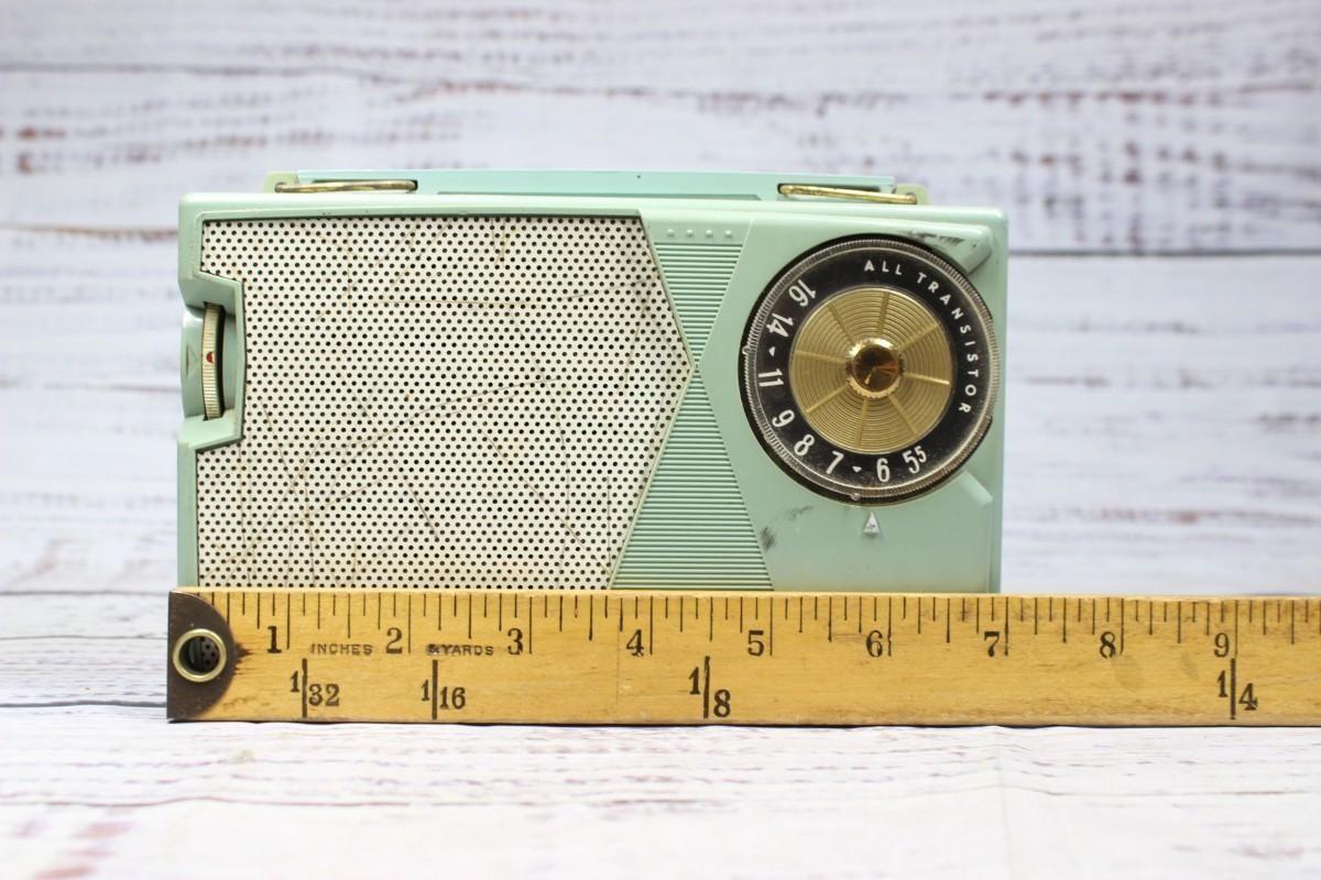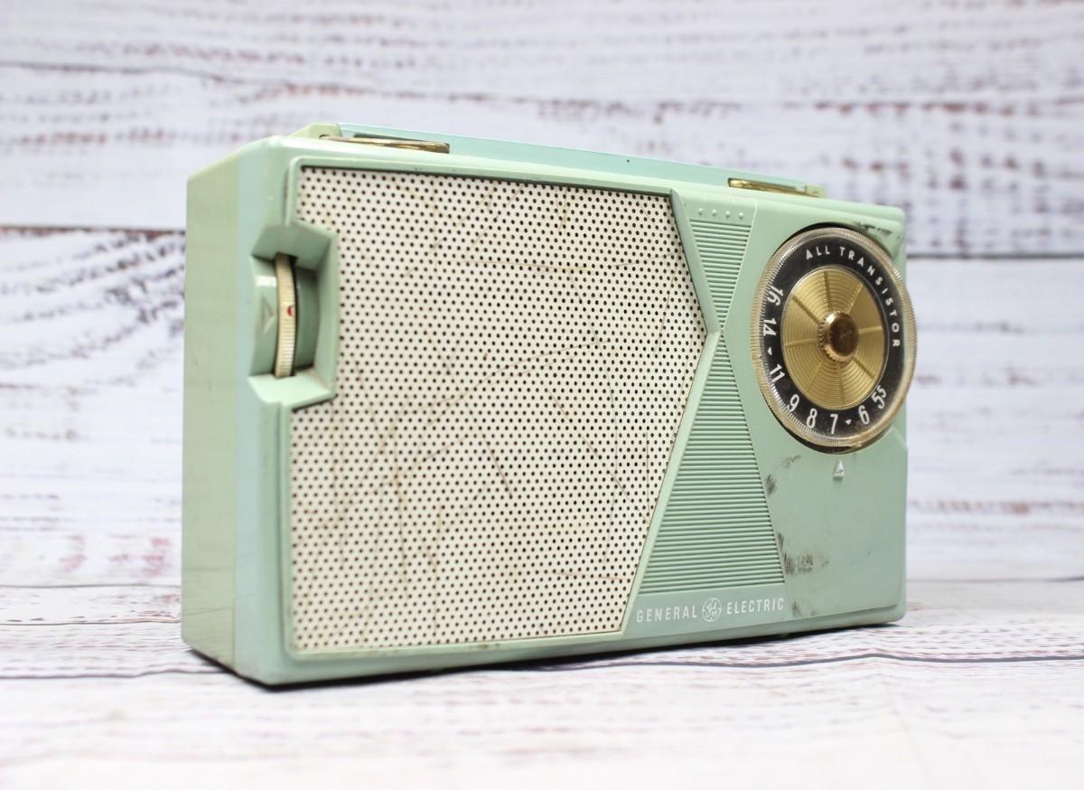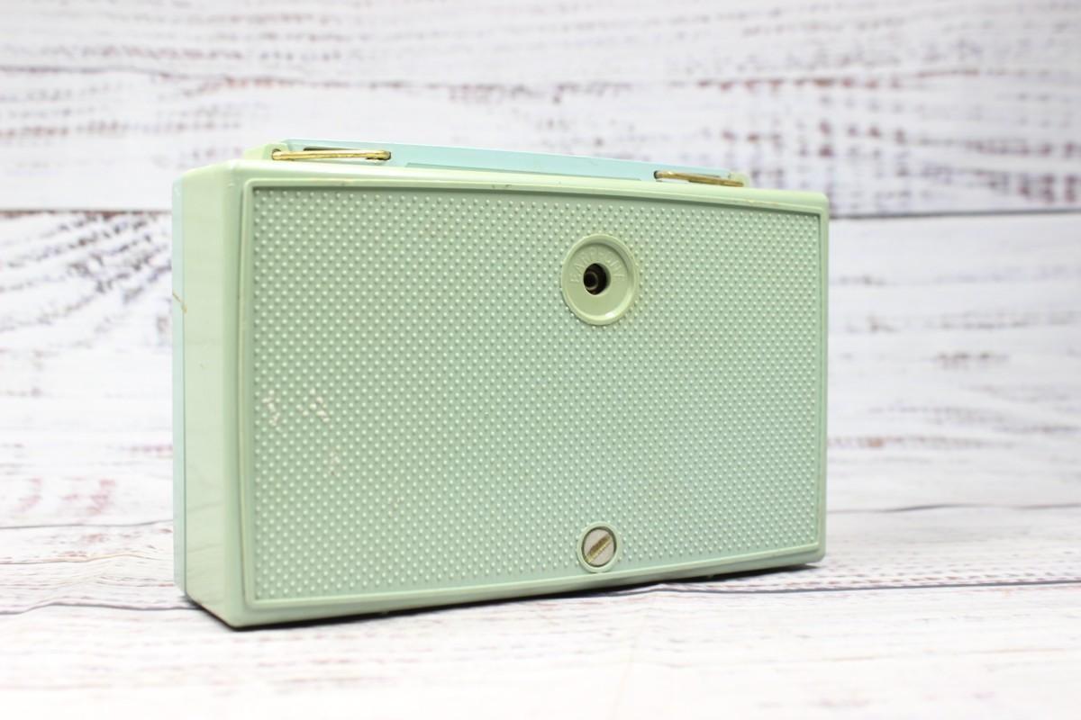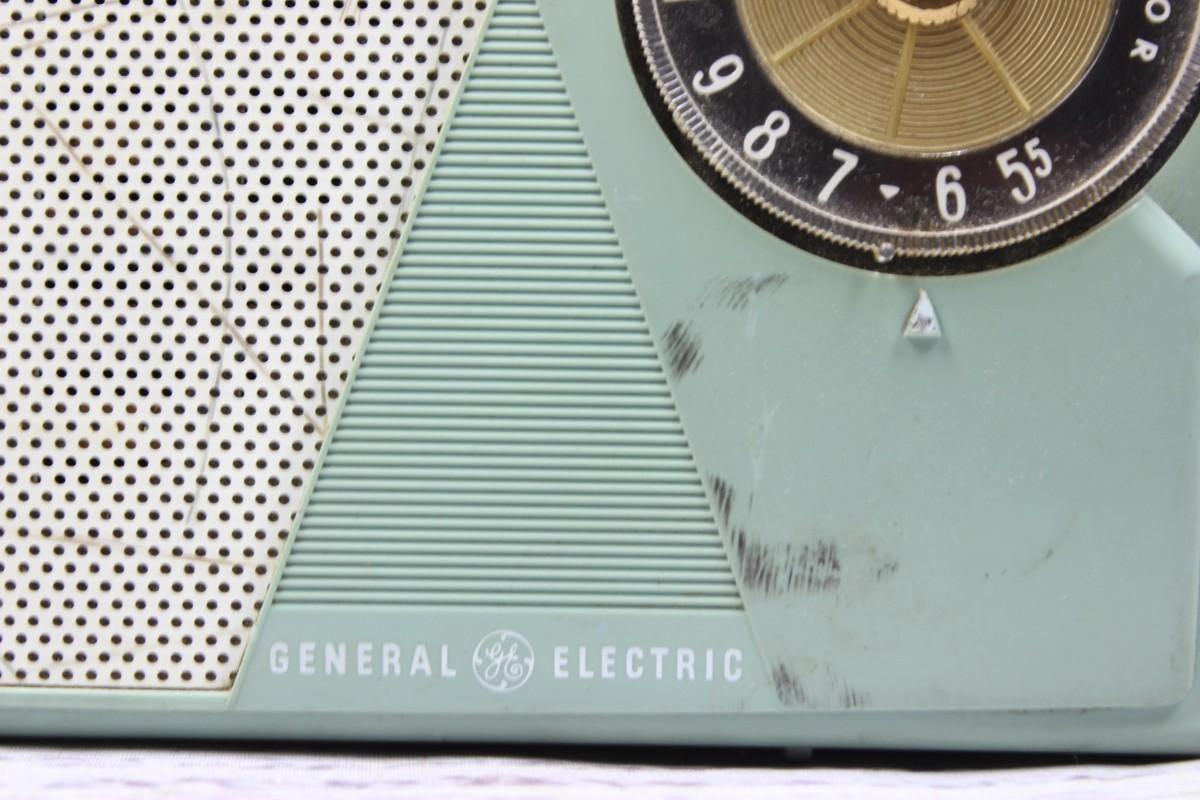 Vintage General Electric 5 Transistor AM Green Radio Model P-806A, there is some vintage wear including some scruffs and scratches check pictures for more details and for sizing. Has not been tested with new batteries.