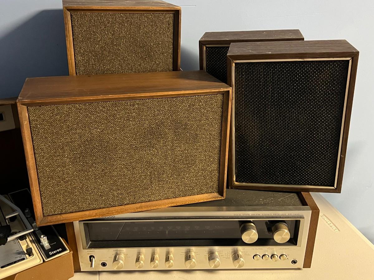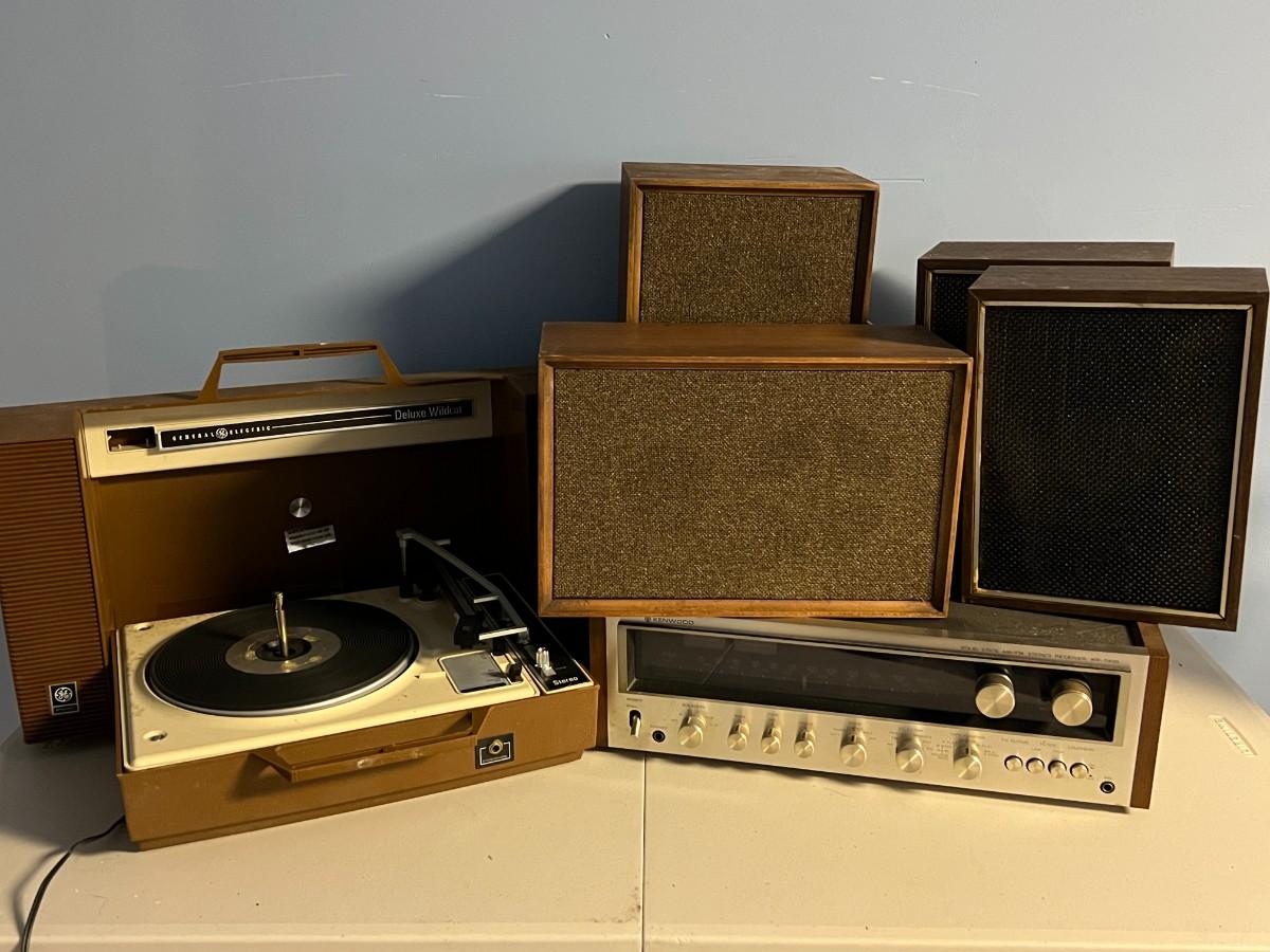 Vintage General Electric Deluxe Wildcat Record Player and Kenwood Receiver/Speakers