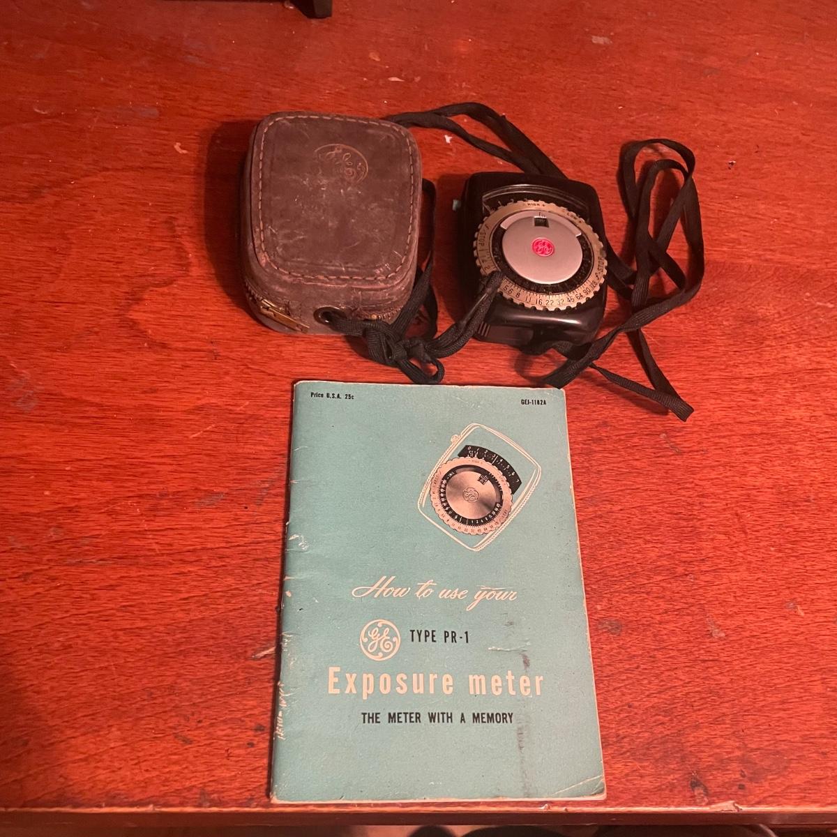 This vintage exposure meter by General Electric is in good condition but was not tested. Comes with manual and original case.