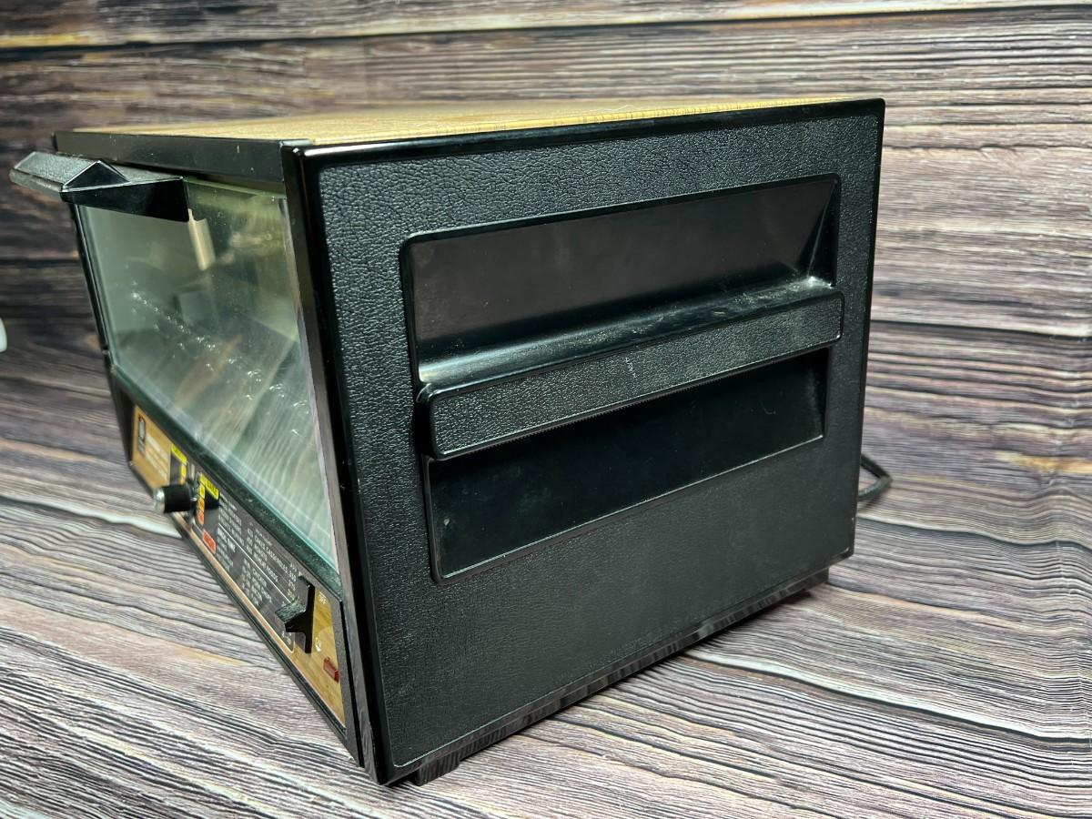 Vintage General Electric Versatron 1000 Oven Broiler Toaster, there is no significant damage to the body of the appliance and is in overall fair vintage condition. Powers on when plugged in, check pictures for more details and for siziing.