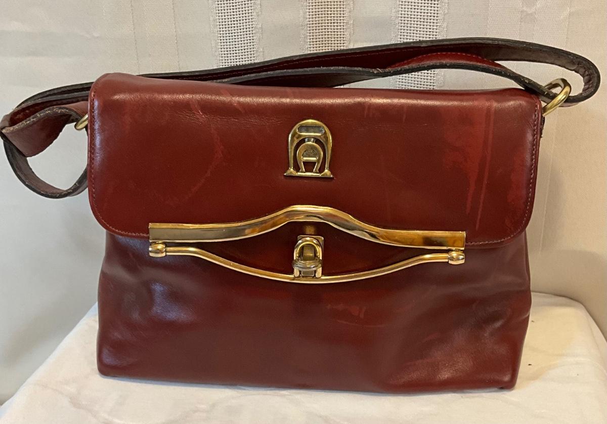 Vintage Etienne Aigner Burgundy, leather handbag 1970s