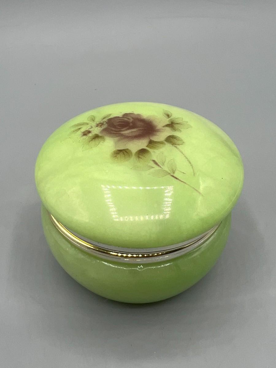 Vintage Genuine Alabaster Italian Mirne Alabastri Hinged Trinket Floral Rose Powder Snuff Box