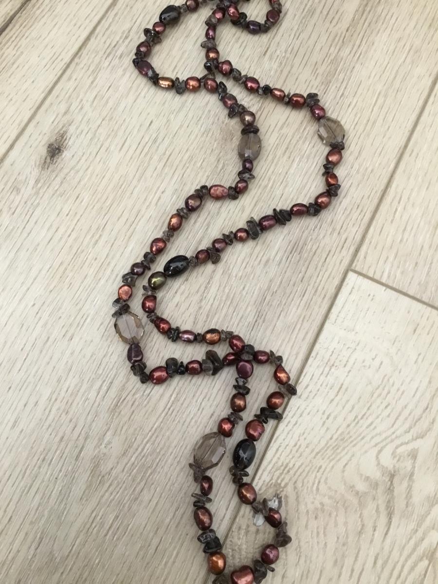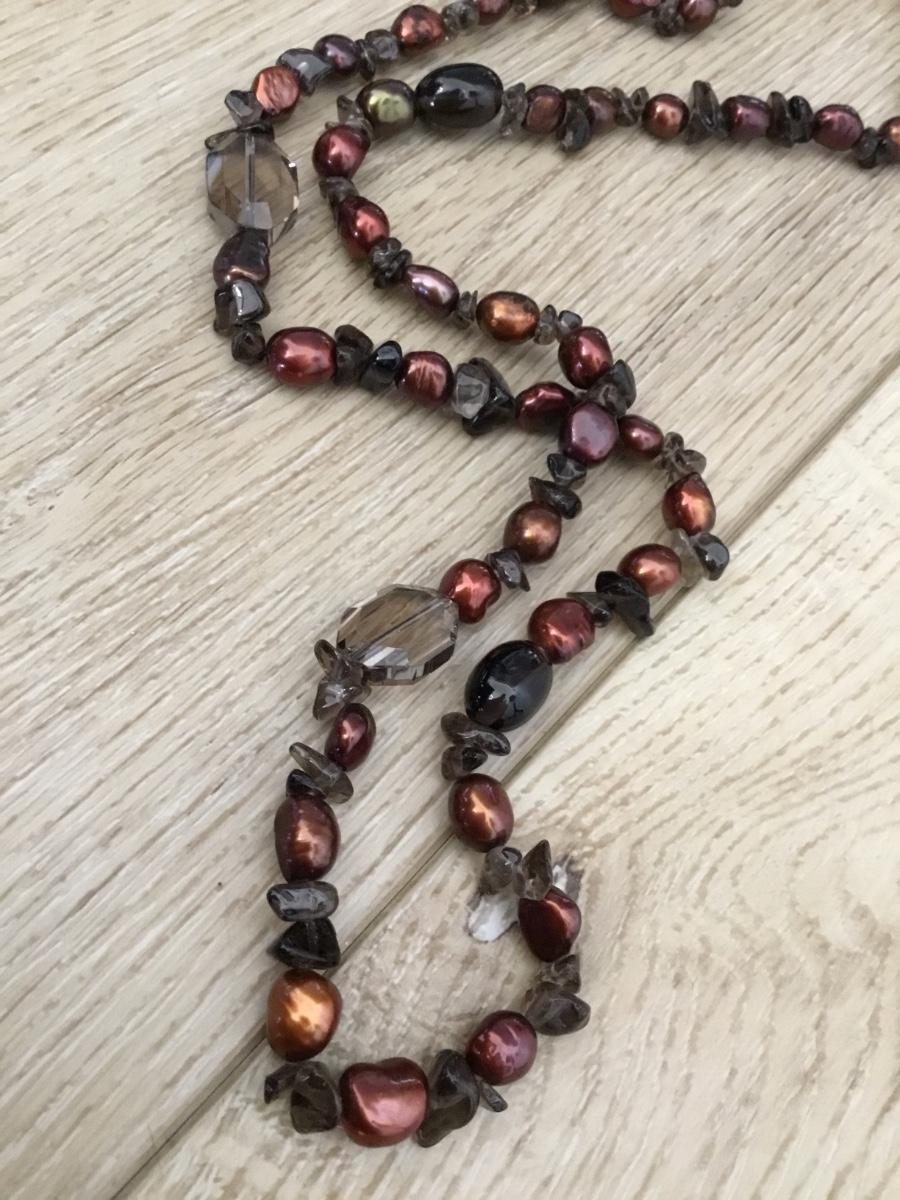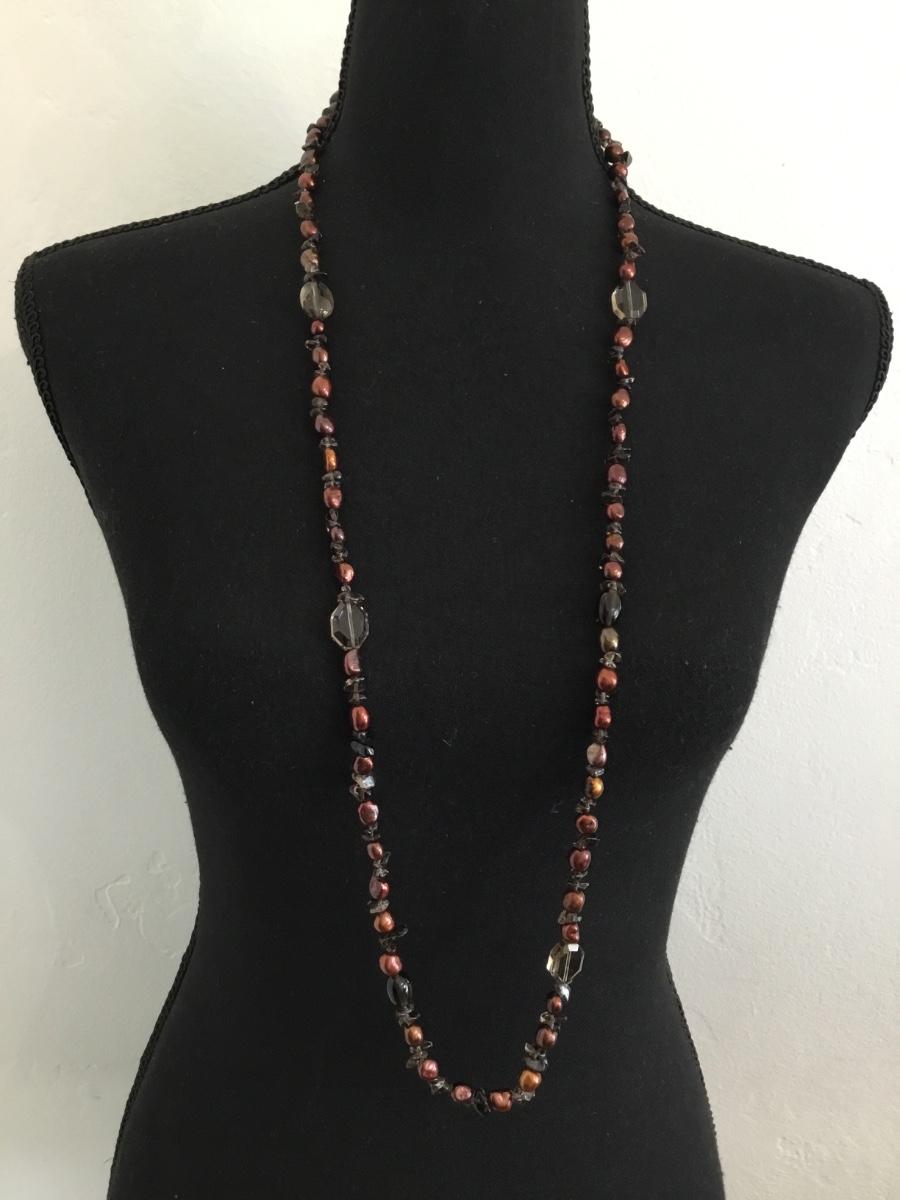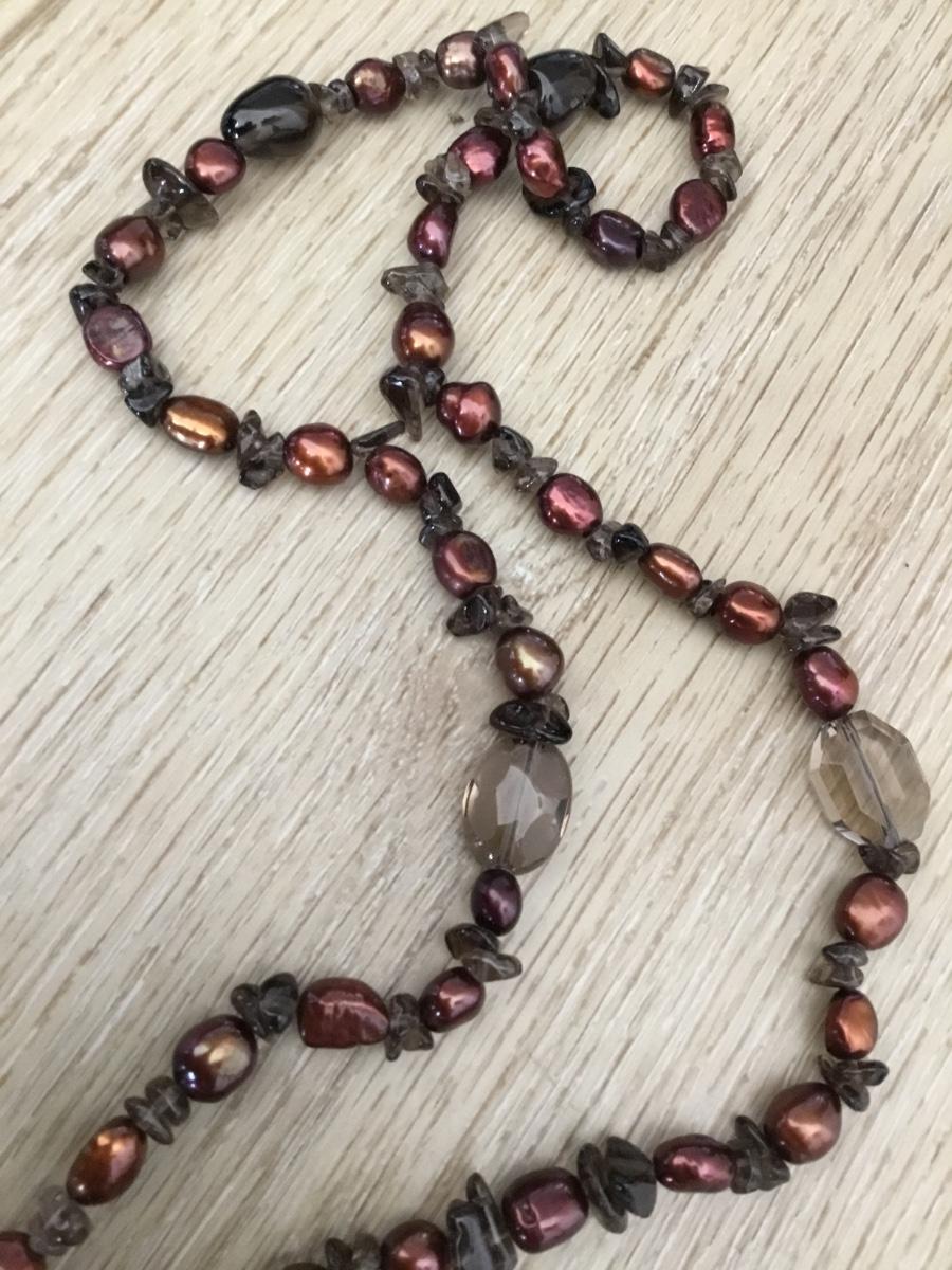 Vintage genuine, pearl and smoky, quartz, crystal fire, agate, crystal beaded necklace
