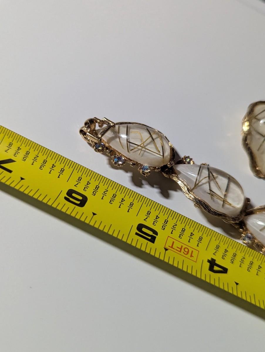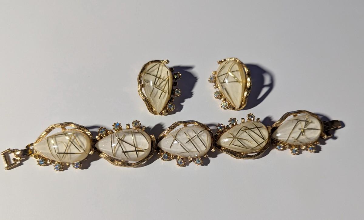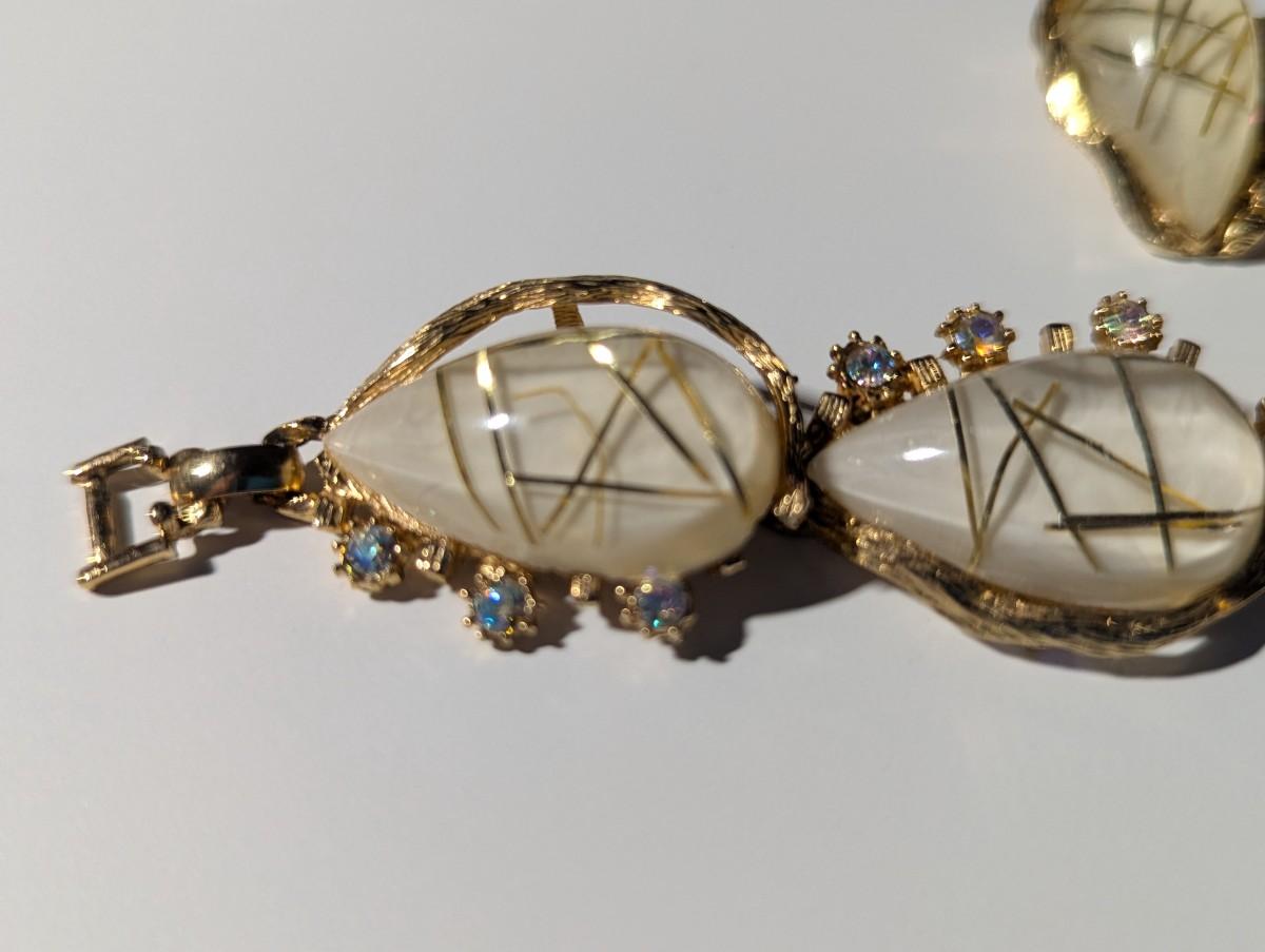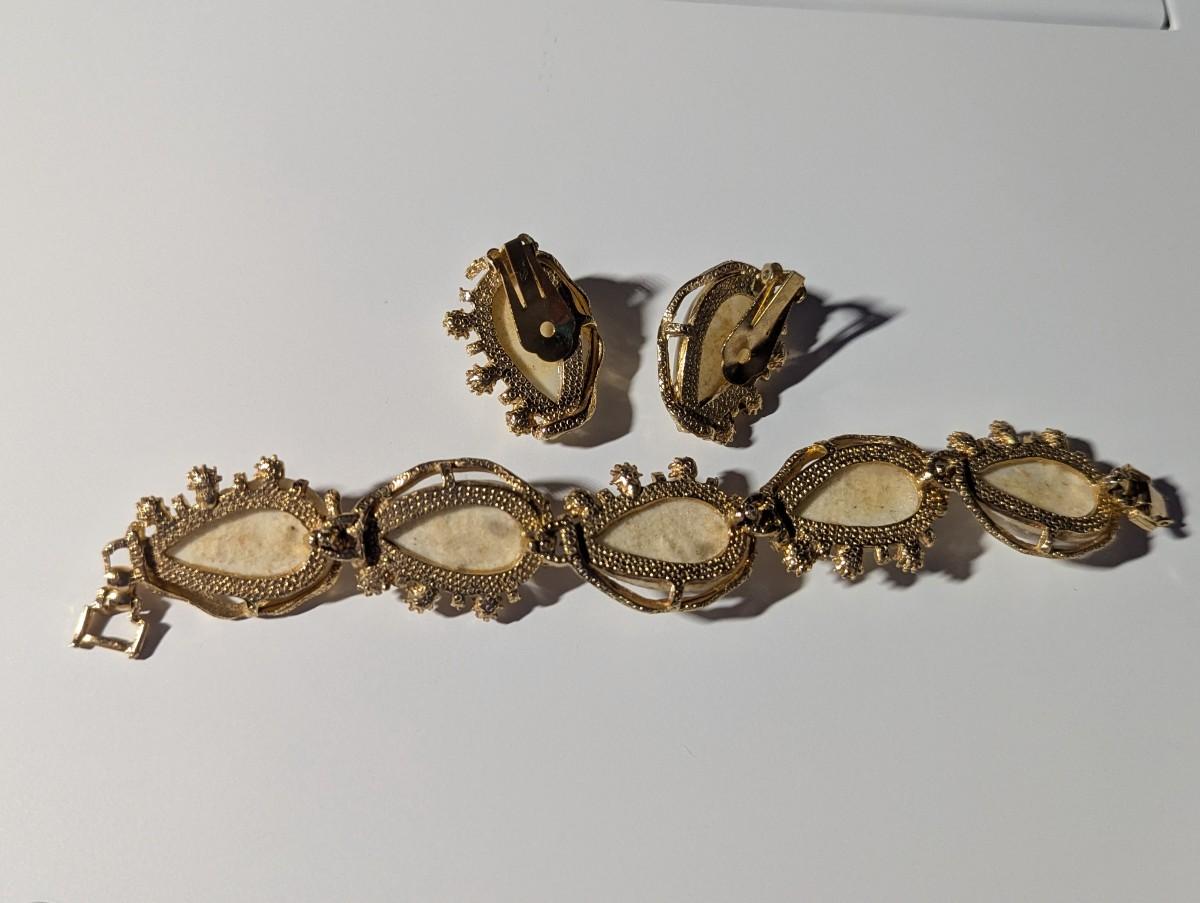 Vintage Link Bracelet & Clip On Earrings set exudes elegance and timeless charm. These pieces of vintage jewelry is perfect for adding a touch of sophistication to any outfit. The bracelet and clip-on earrings complement each other seamlessly, making it a versatile and luxurious addition to any jewelry collection.