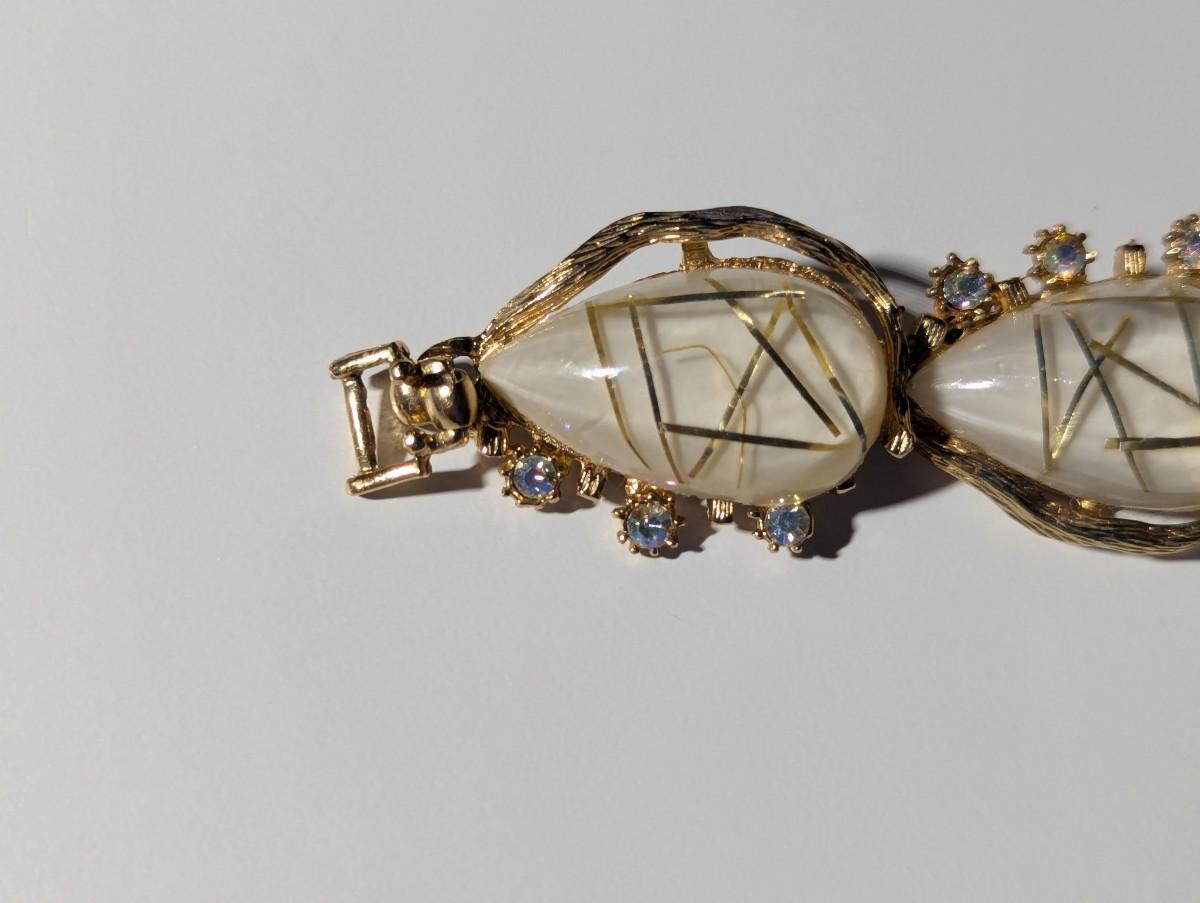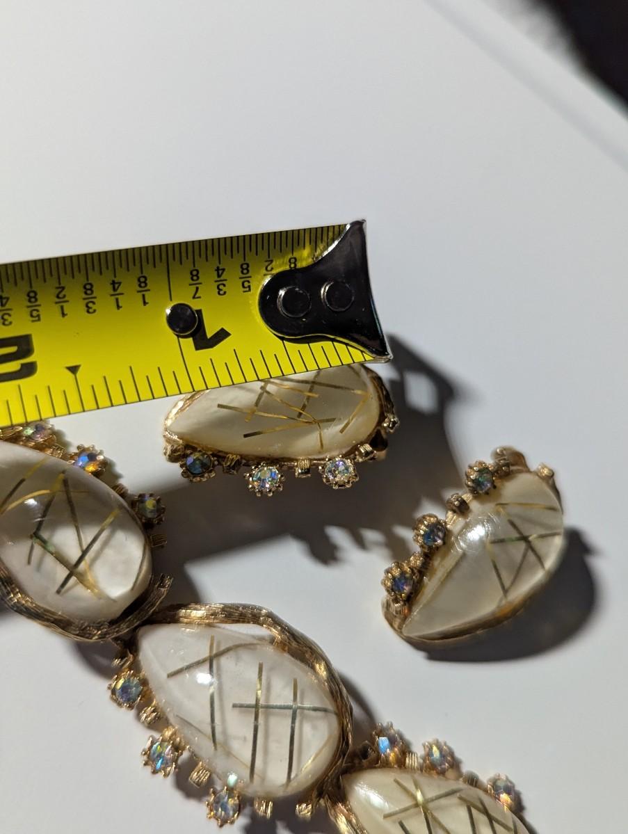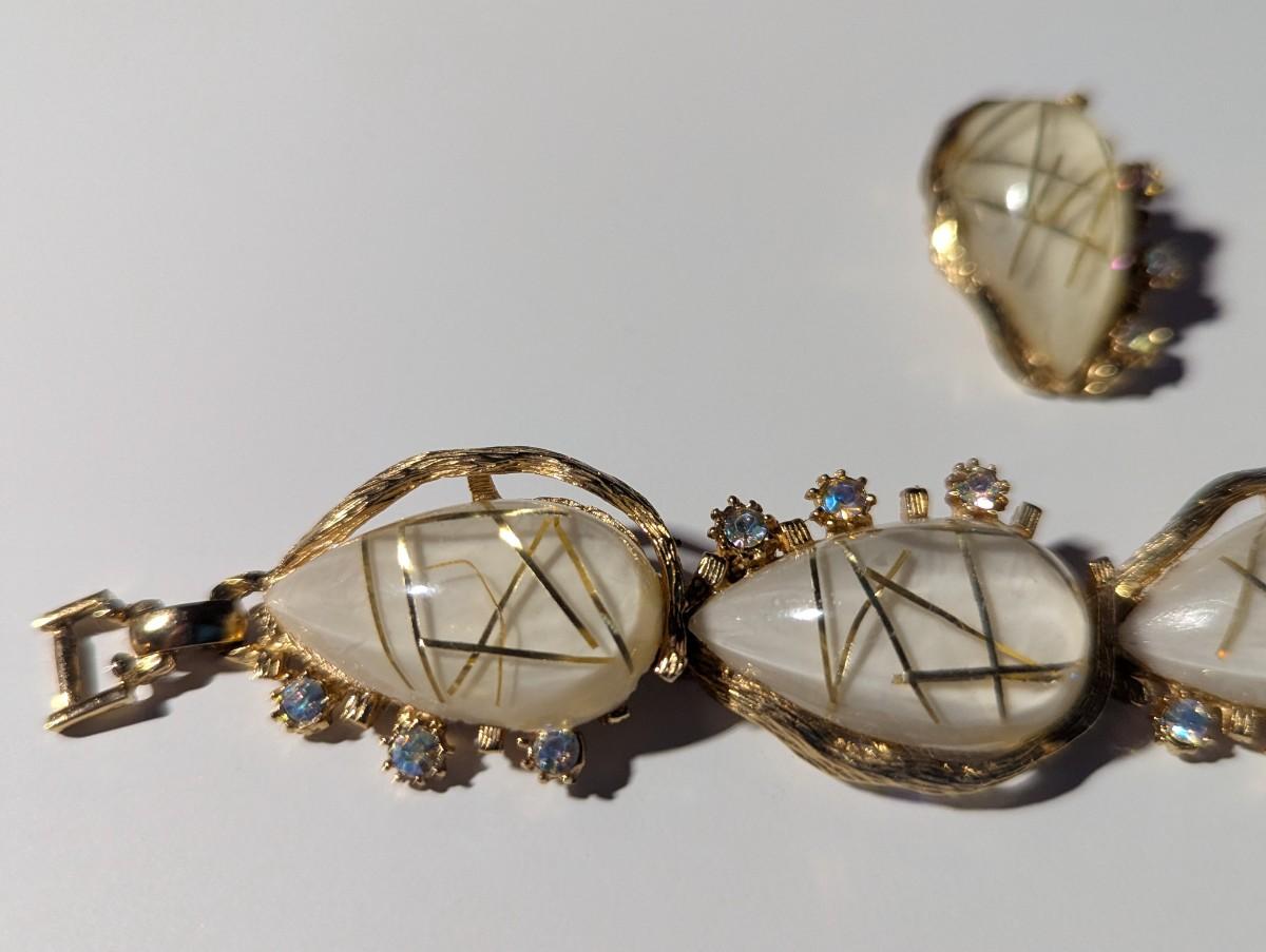 Vintage Link Bracelet & Clip On Earrings set exudes elegance and timeless charm. These pieces of vintage jewelry is perfect for adding a touch of sophistication to any outfit. The bracelet and clip-on earrings complement each other seamlessly, making it a versatile and luxurious addition to any jewelry collection.