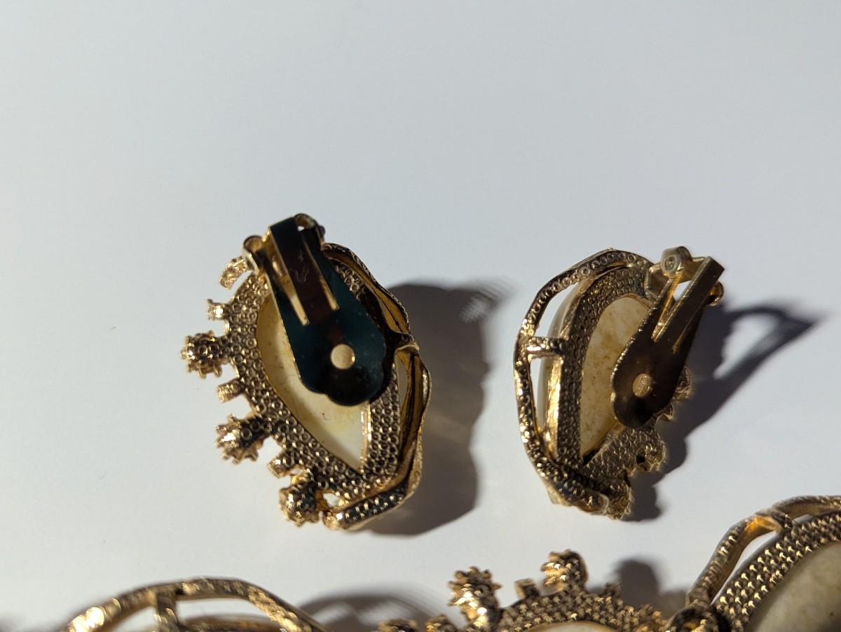 Vintage Geometric Link Bracelet & Clip On Earrings #9