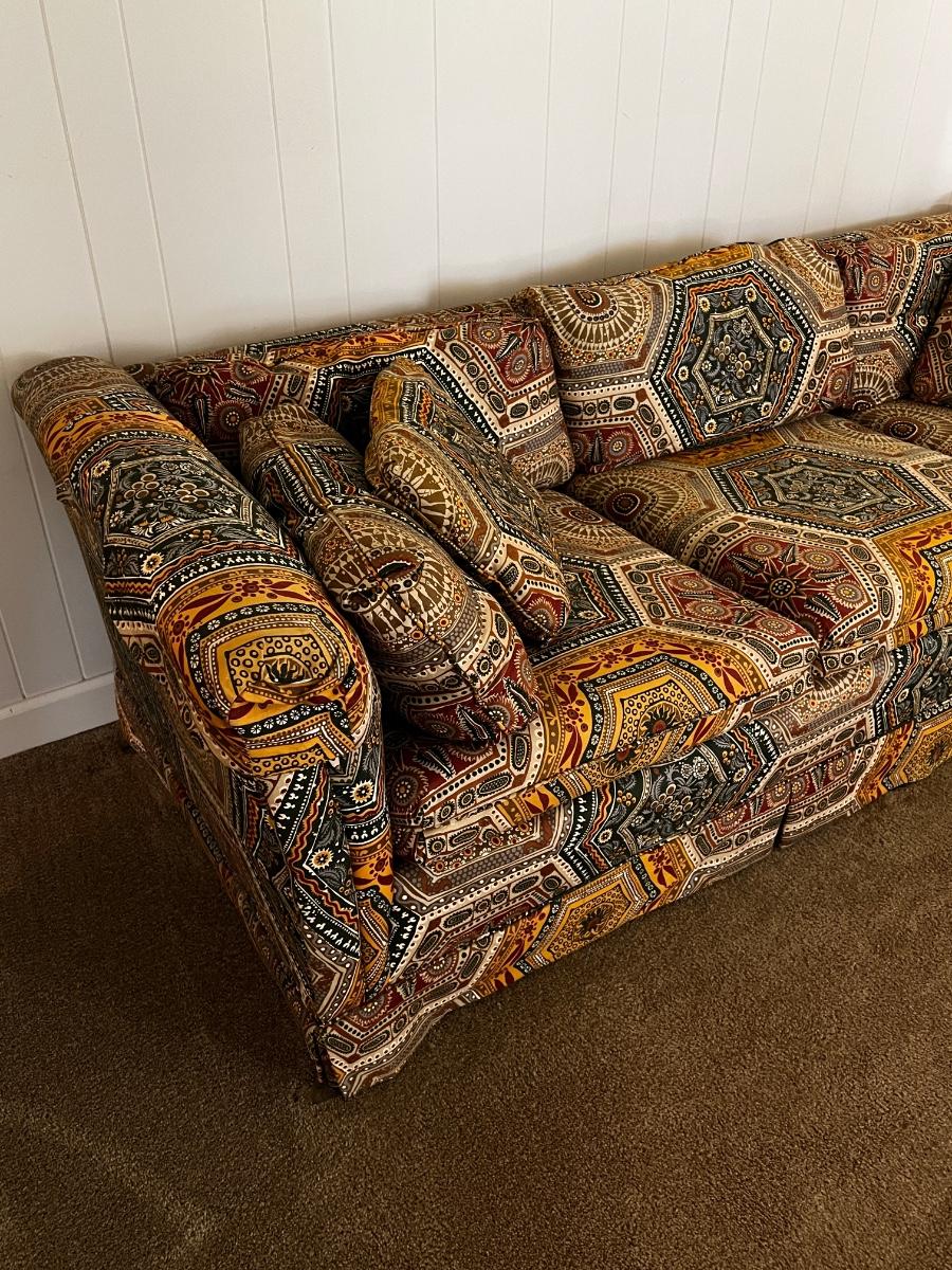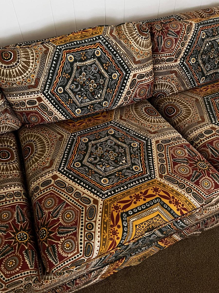 Vintage Geometrical Floral Retro Sofa & Four (4) Pillows