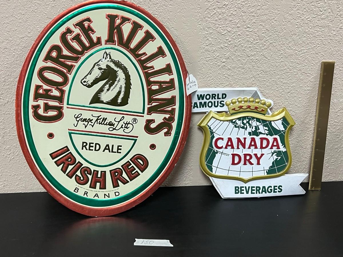 Vintage George Killian's Irish Red Ale Beer Sign and Canada Dry Beverages Sign