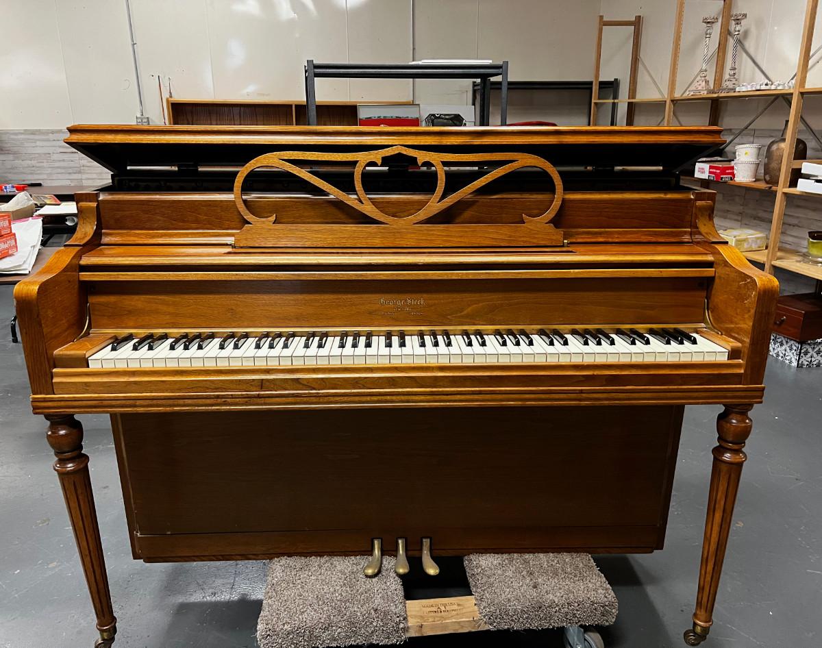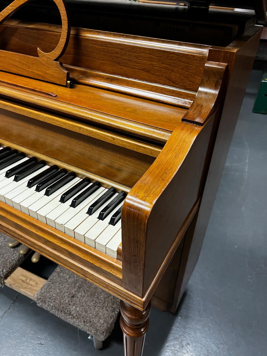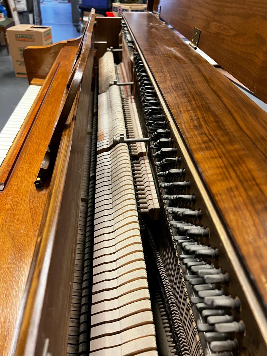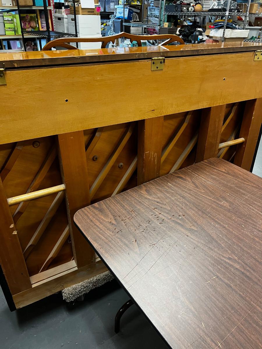 Piano is in good condition. wood has a couple of dings and some fading from time. Always inside a home, never stored in a garage or storage unit. Has good sound but I am sure it will need a tune. Piano is sitting on a skateboard dolly, easy to roll but you will need loading help. I would suggest a lift gate truck.