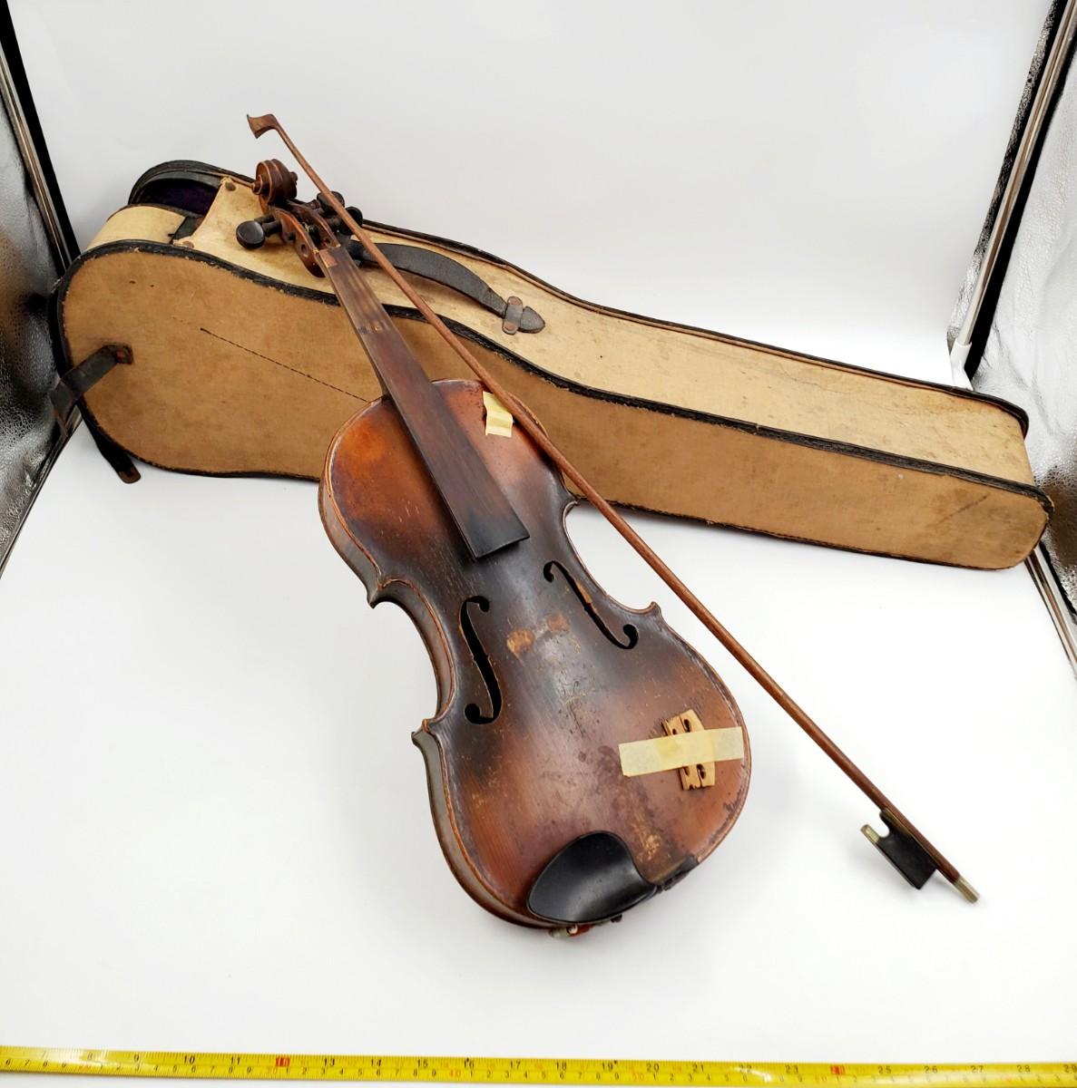 VINTAGE GERMAN ANTONIUS STRADIVARIUS VIOLIN CREMENFIS FACIEBAT ANNO WITH BOW AND CASE