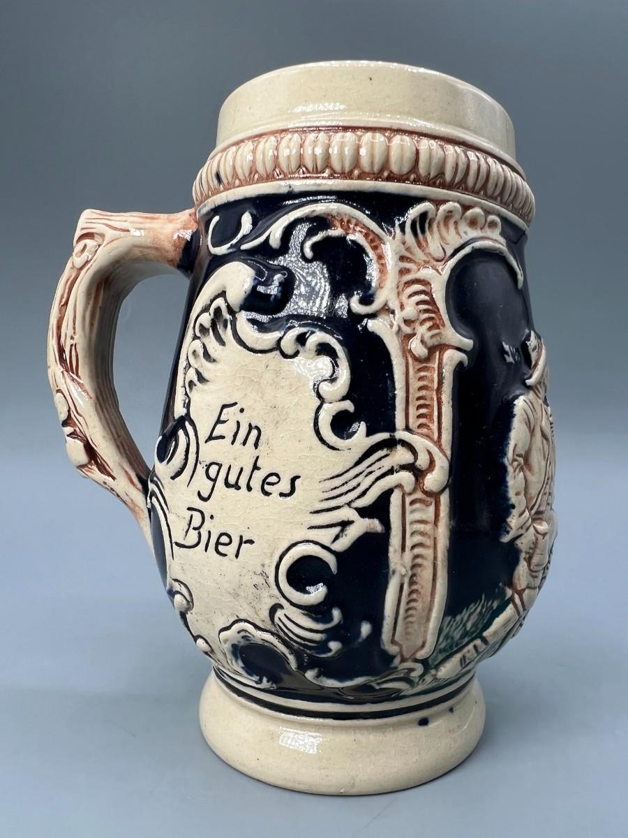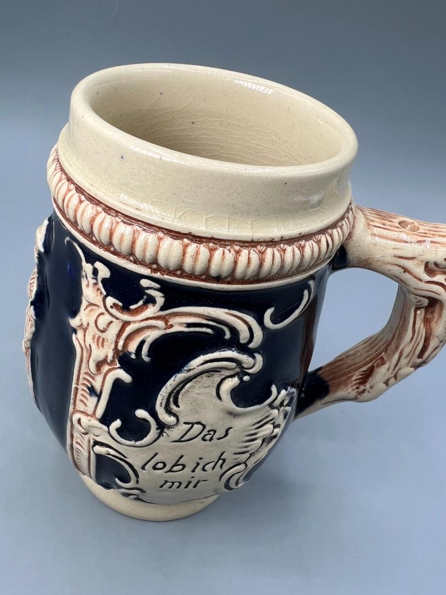 Vintage German Cobalt Beer Stein Pair of Lovers Das Lobich Mir Ein Gutes Bier