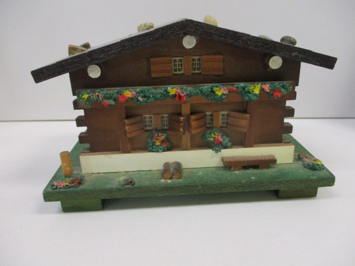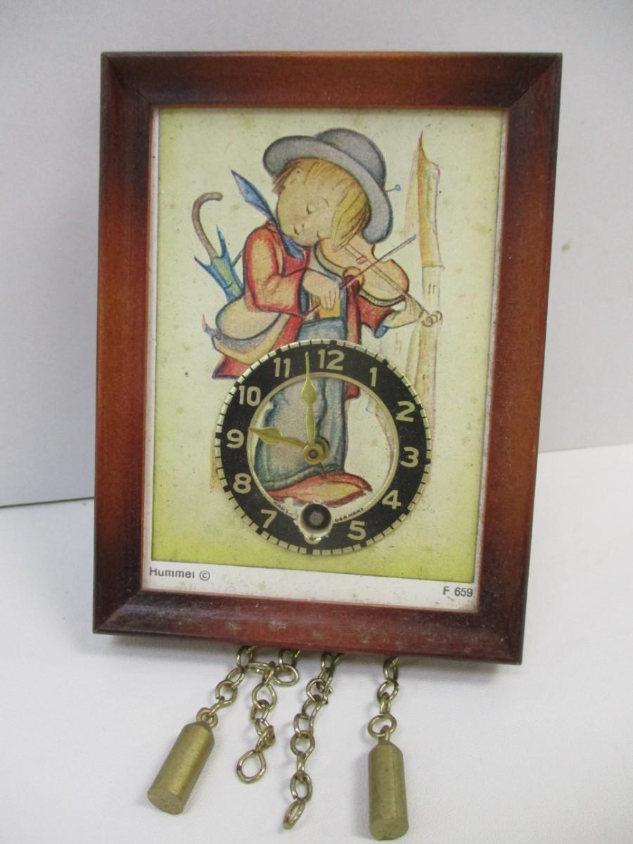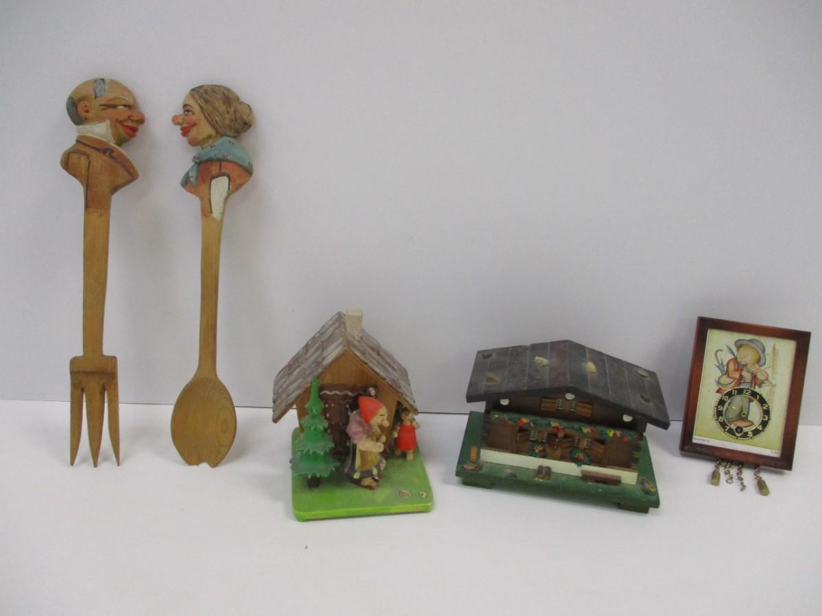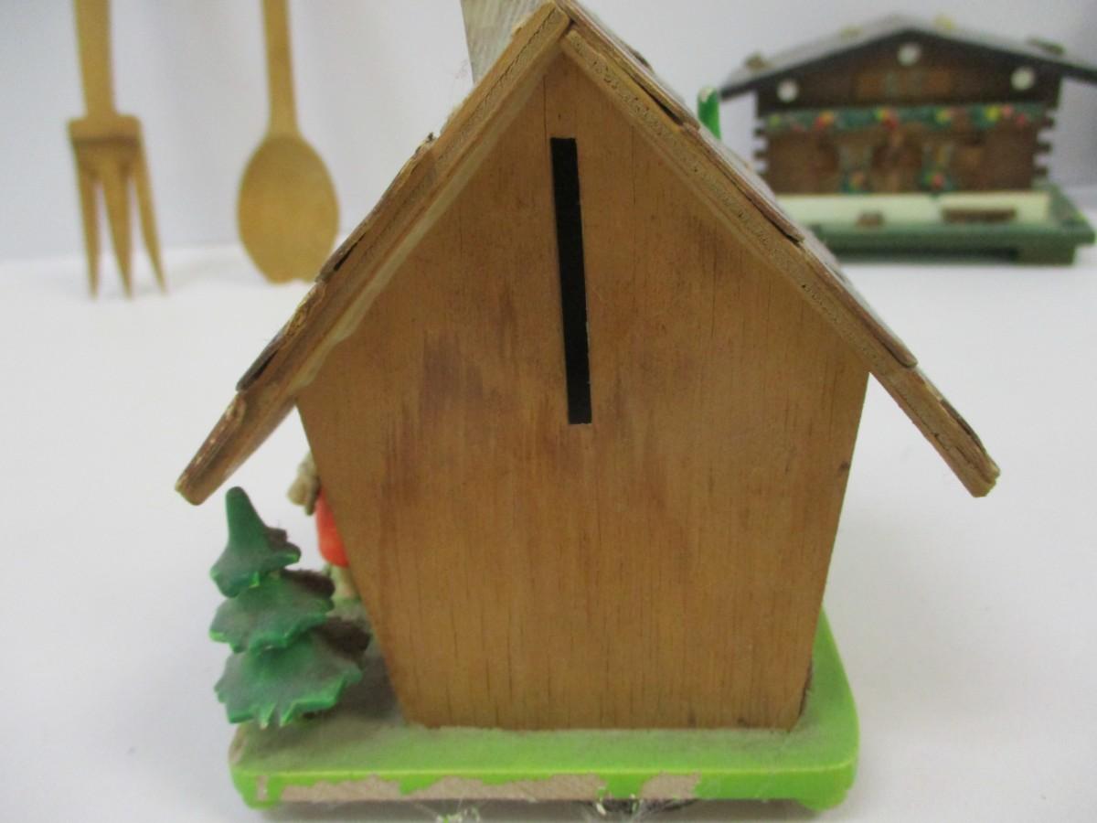 Vintage German Decor Bank Clock Music Box Wooden Utensils