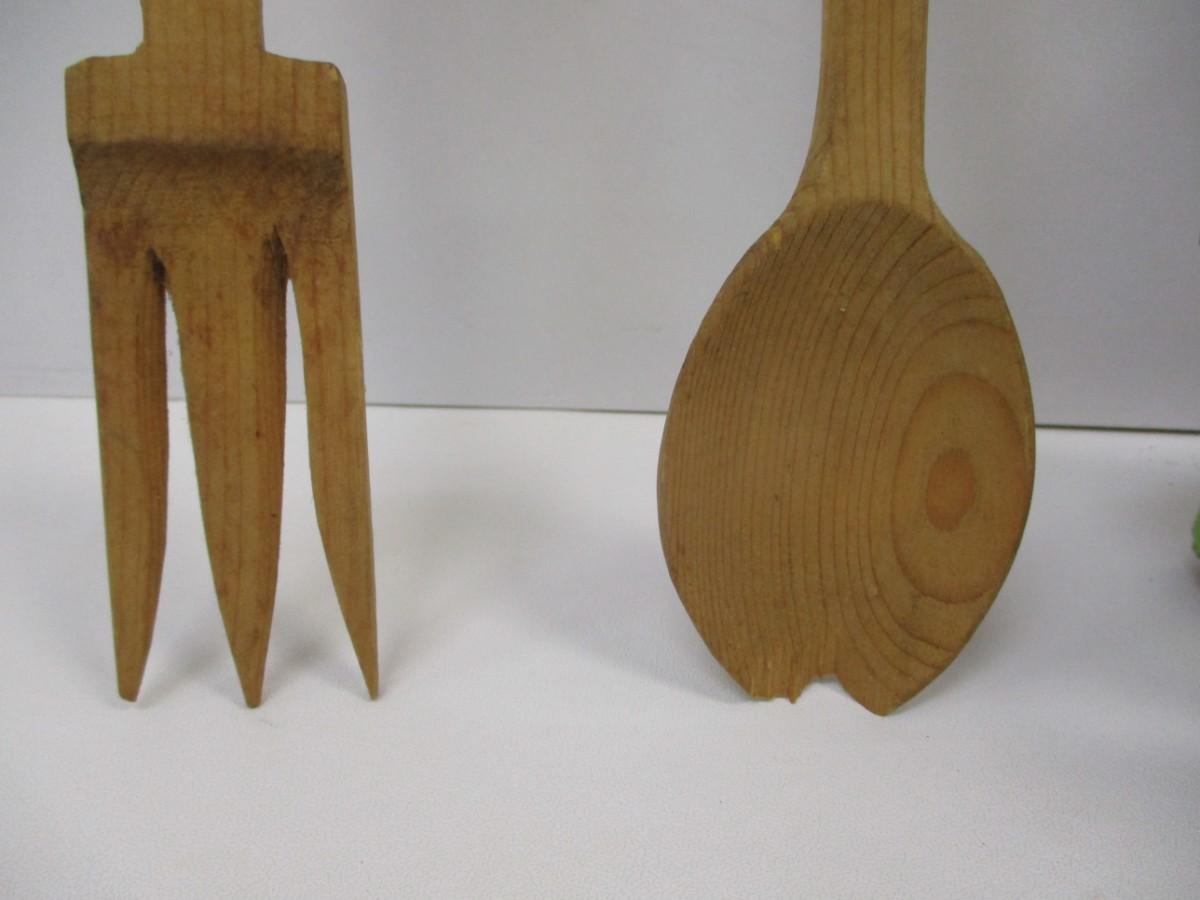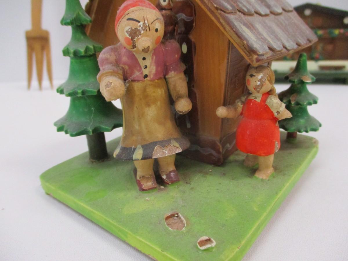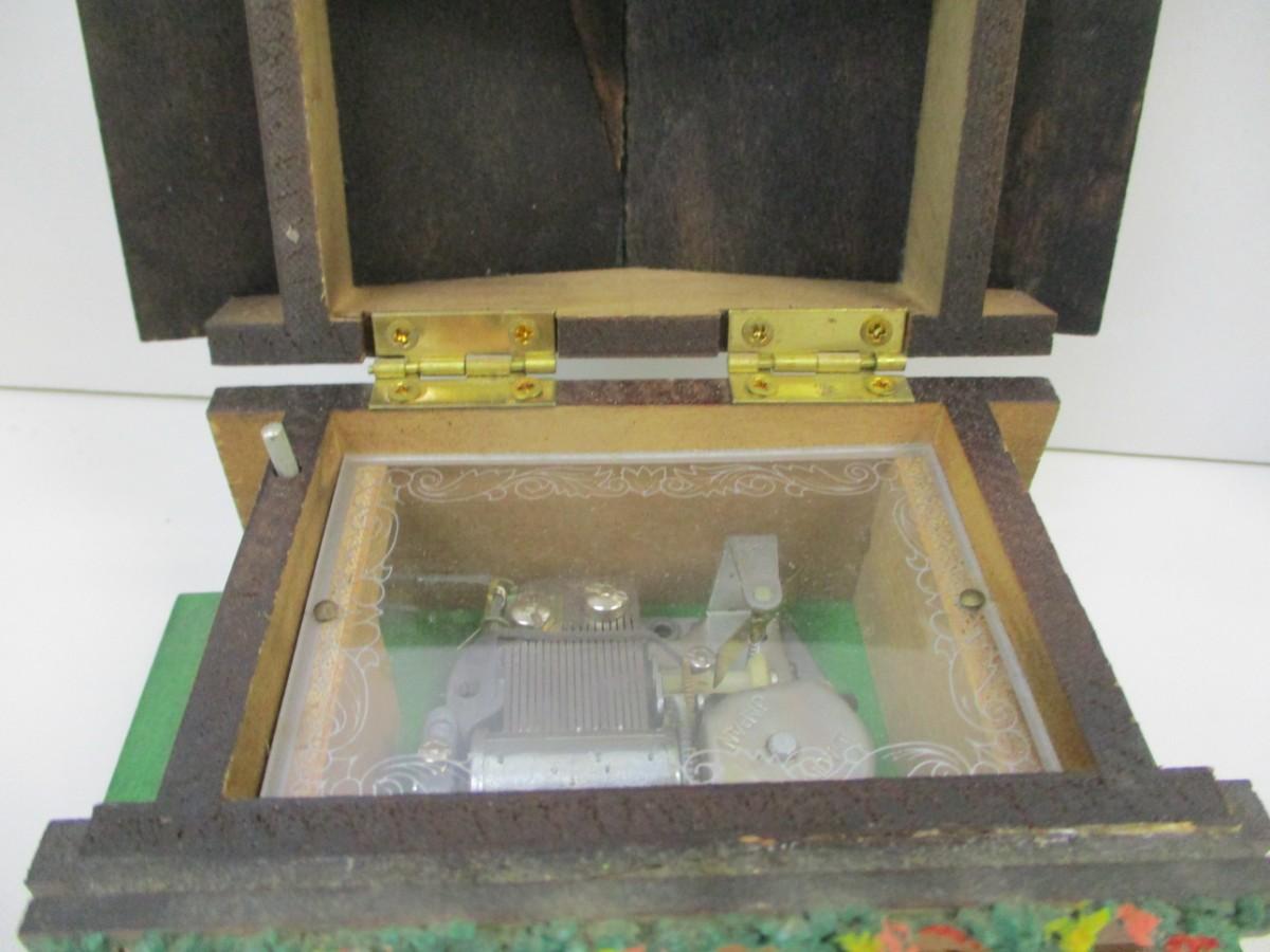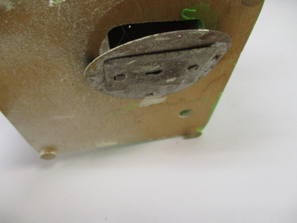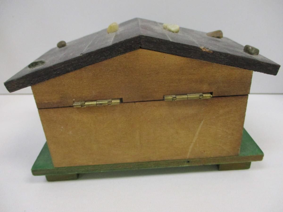 Vintage German Decor Bank Clock Music Box Wooden Utensils