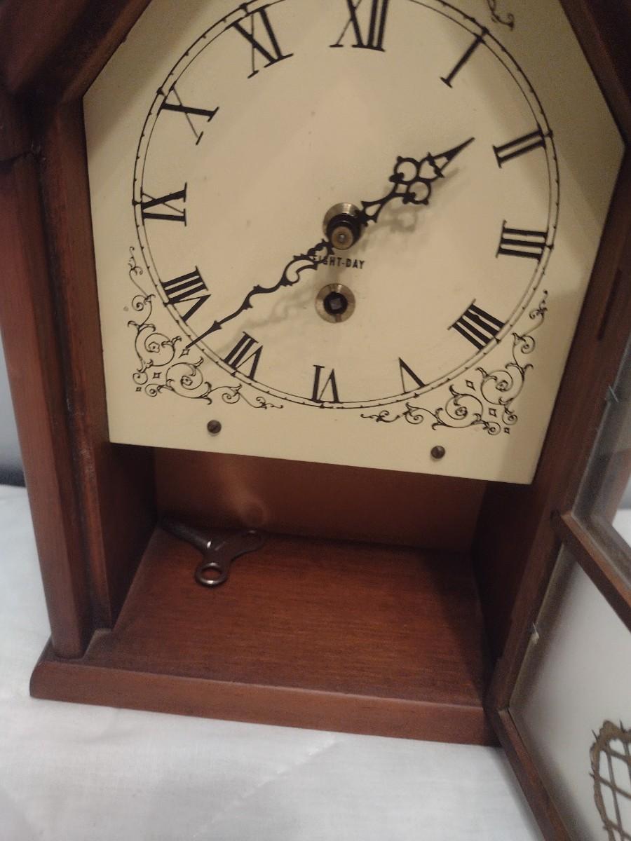 Vintage German Eight-Day Steeple Mantle Clock with Key