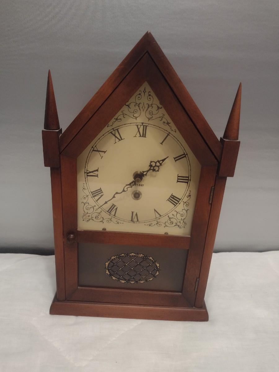 Vintage German Eight-Day Steeple Mantle Clock with Key Possible Three Mountaineers