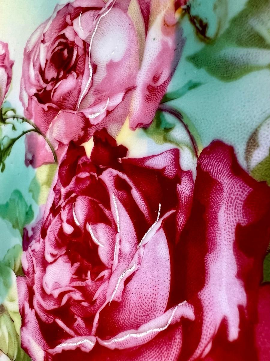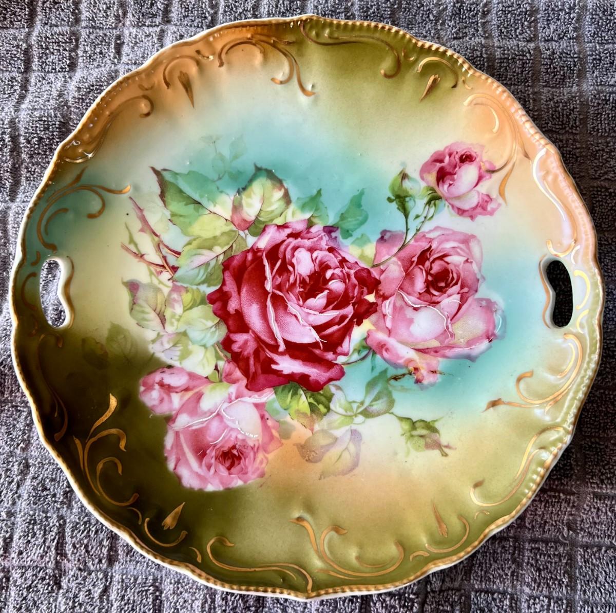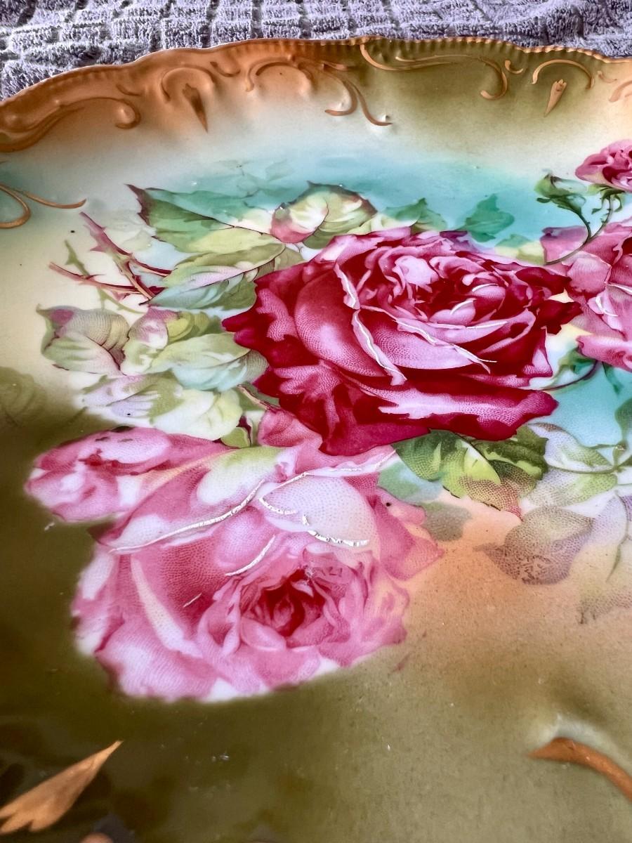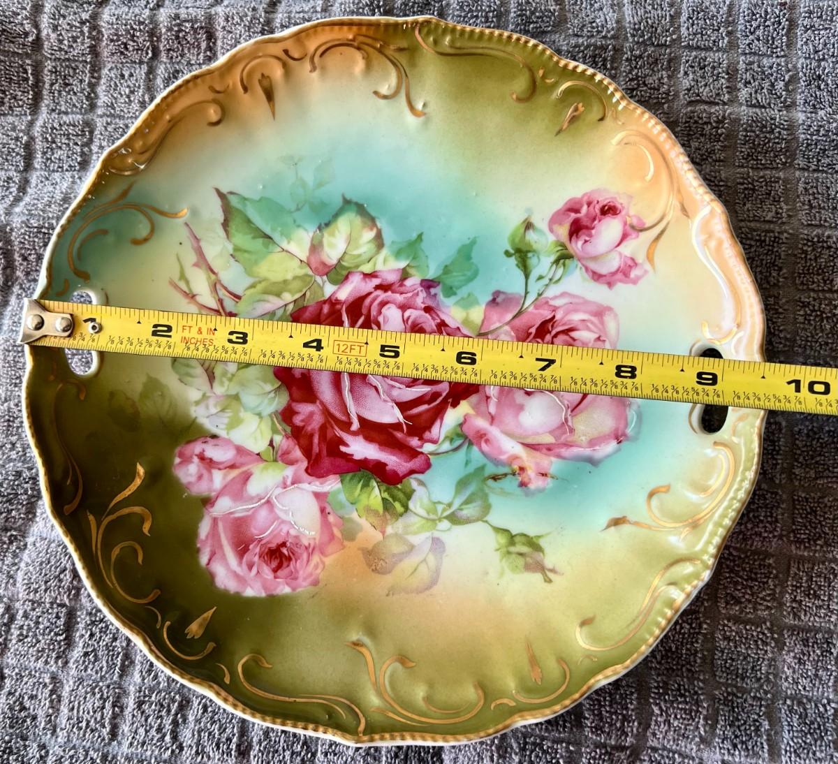 Vintage German Gold Gilt Pink Roses Decorative Porcelain Dish 9.5" Inches