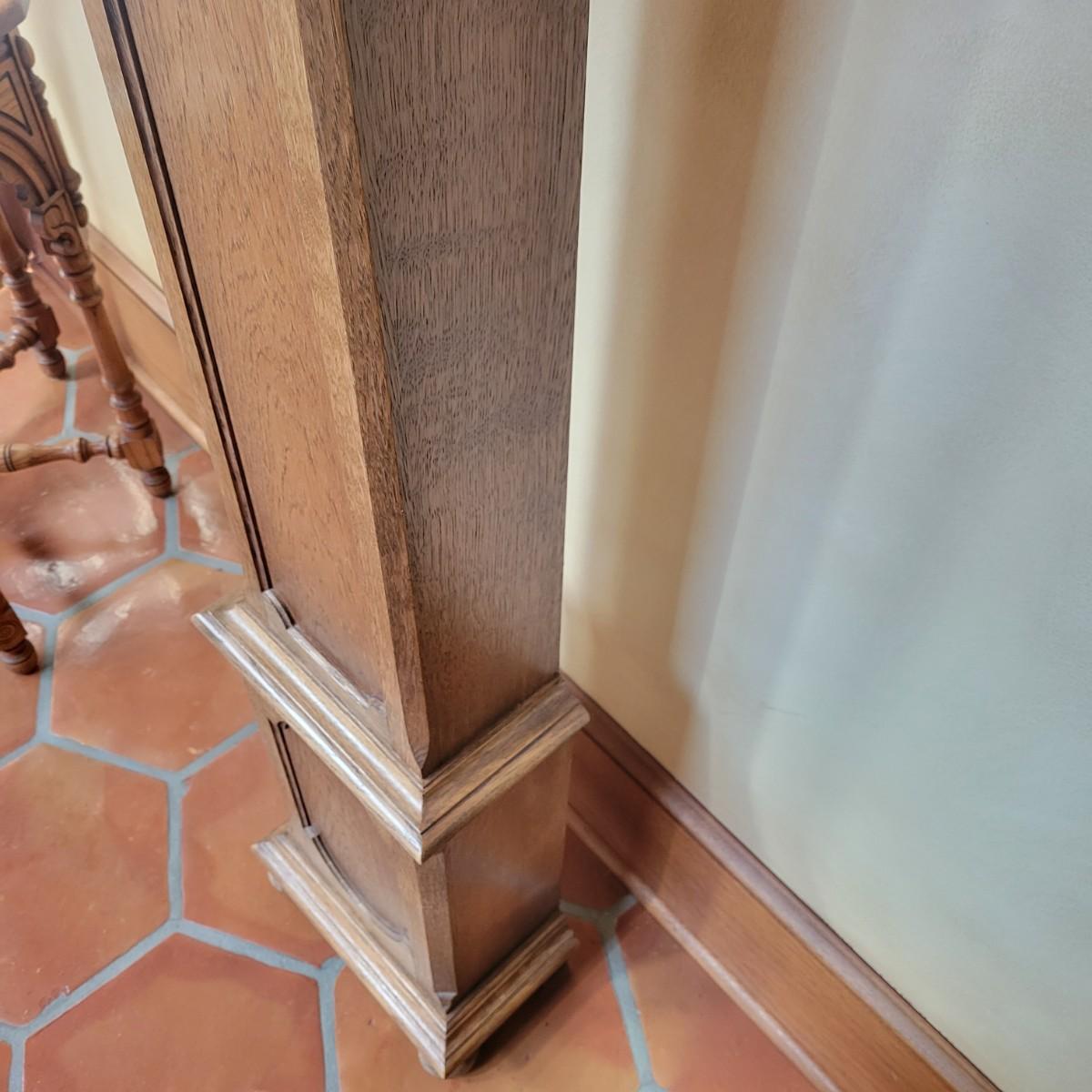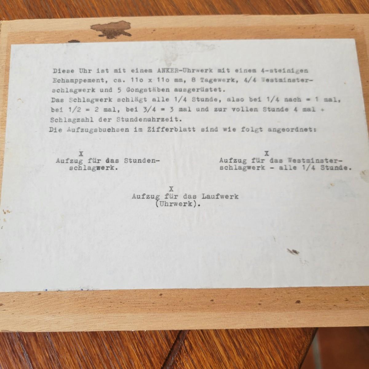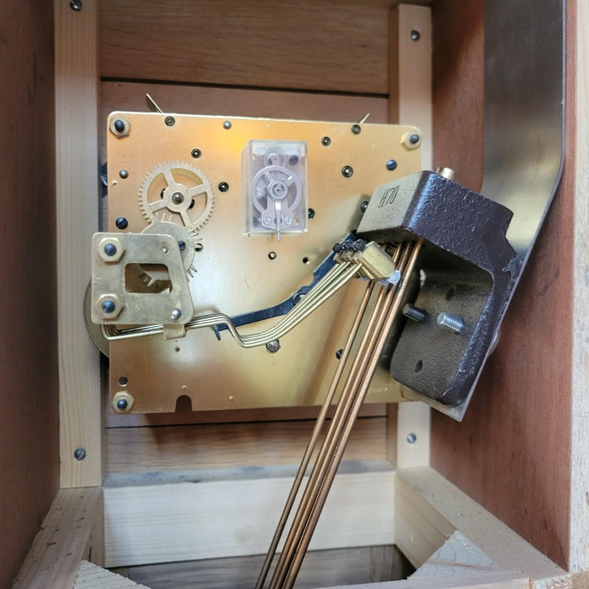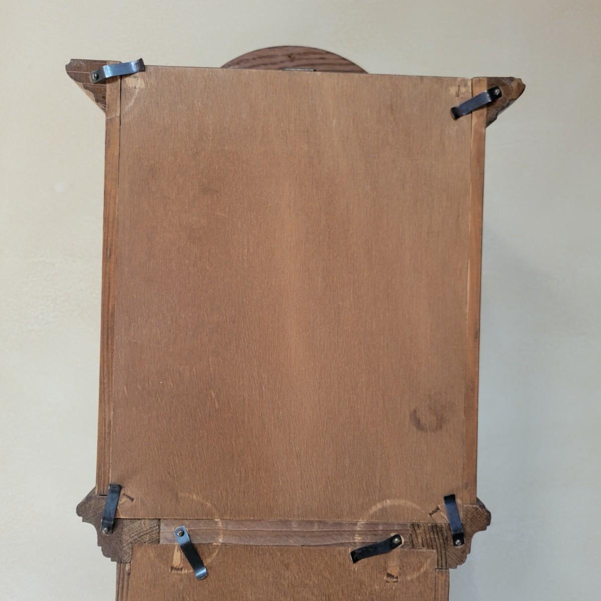 A vintage German made tall floor clock that appears to be made of oak. It includes a key and the clock and chime mechanisms still work. It measures approximately 12.5" x 7" x 70.5". Local pickup only