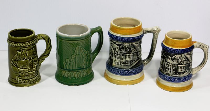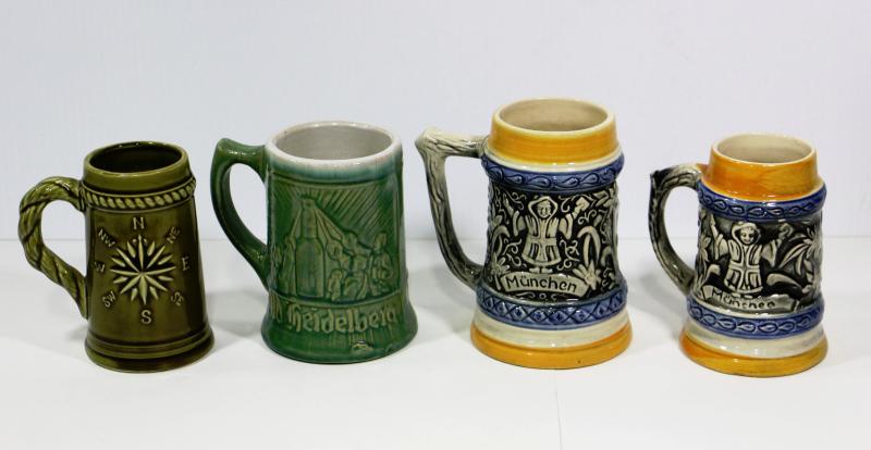 3 Steins are Germany made and 1 made in Japan, great condition.