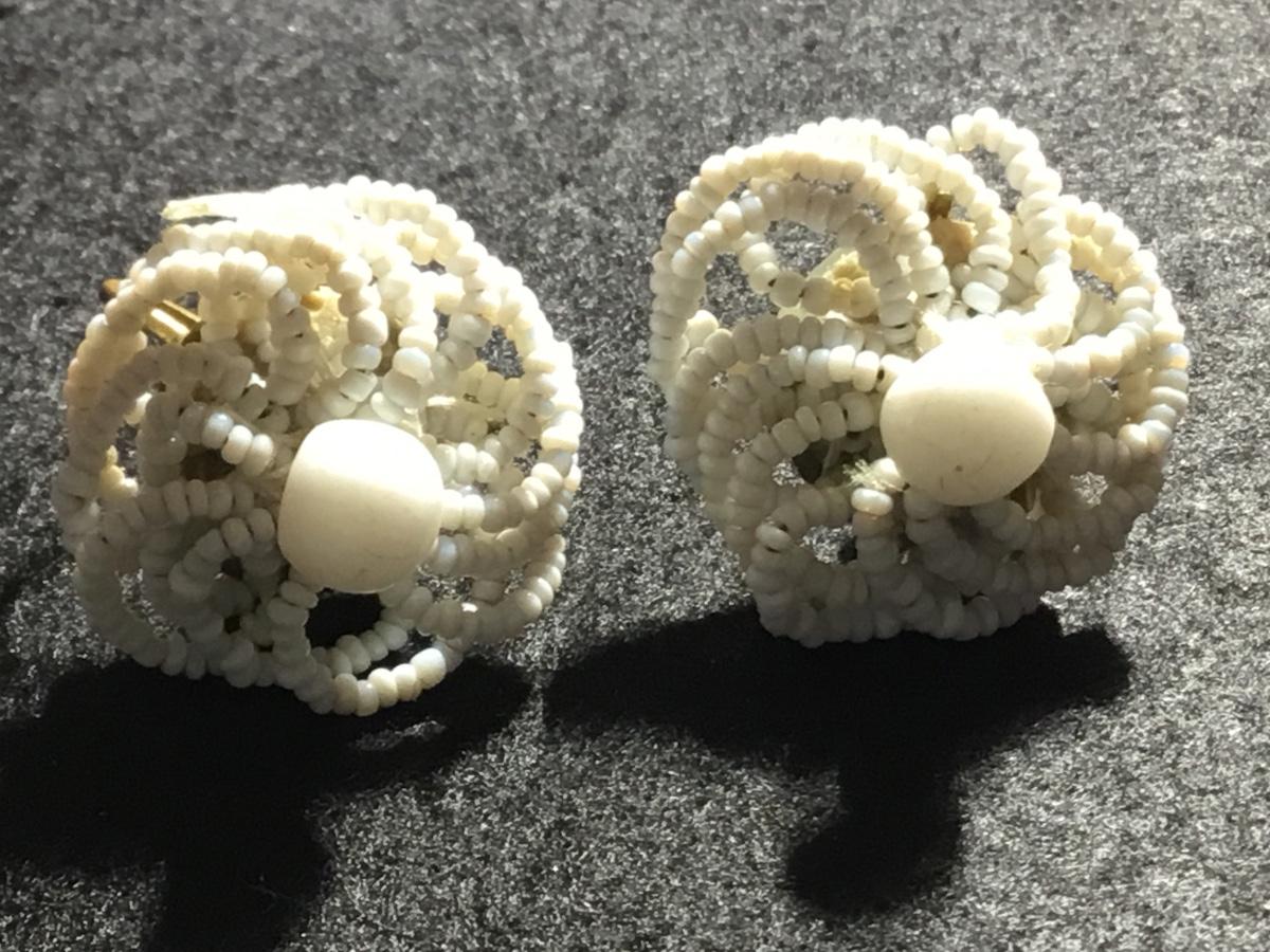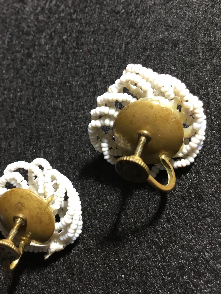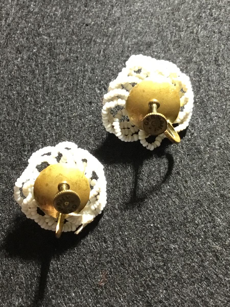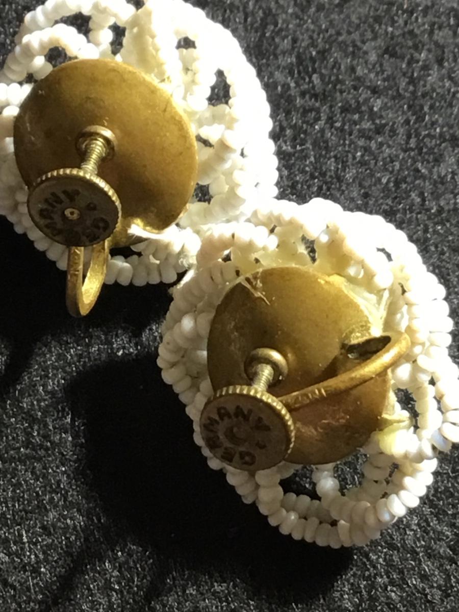 Vintage German zone marked white beaded round screw on earrings