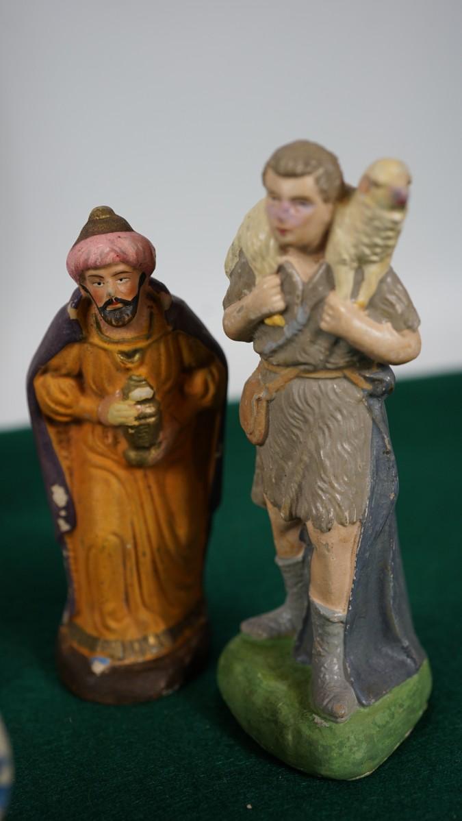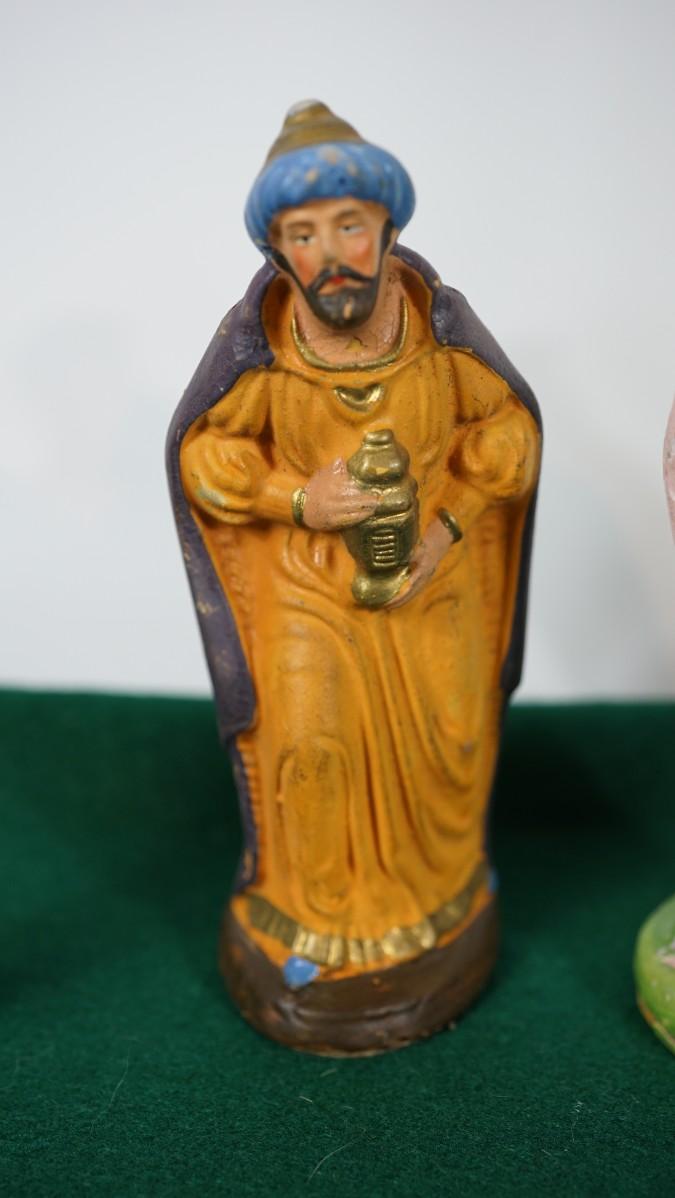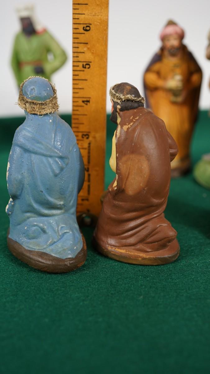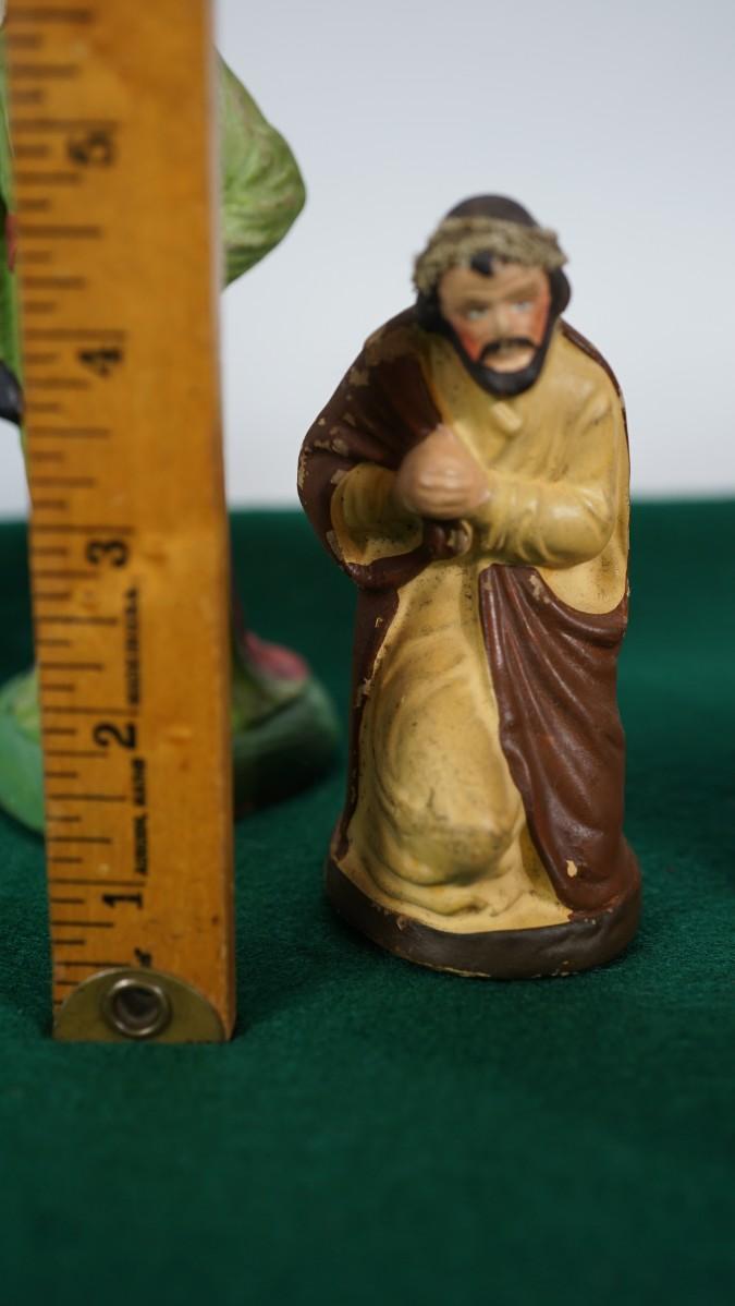 VINTAGE GERMAN PAPER MACHIE NATIVITY SCENE FIGURINES. 6 1/2" HAND PAINTED