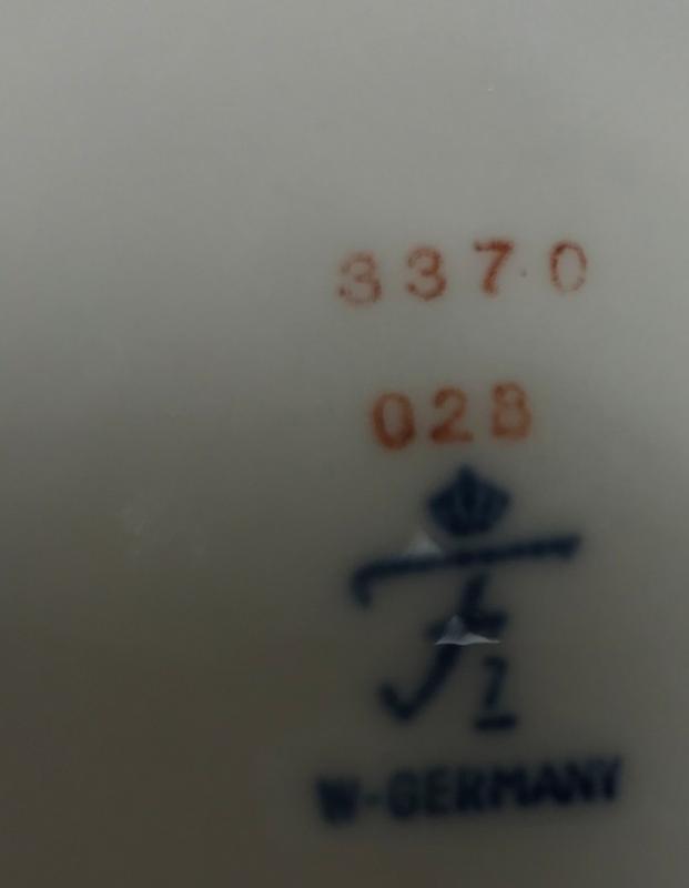 Description: German Stamped F7 Schwabisch Hall Comburg coaster marker 337D 028. Measurement approximate: 4 W X 3 25 D. Material: Porcelain. Shipping cost : $14 Excluding California, Alaska & Hawaii.