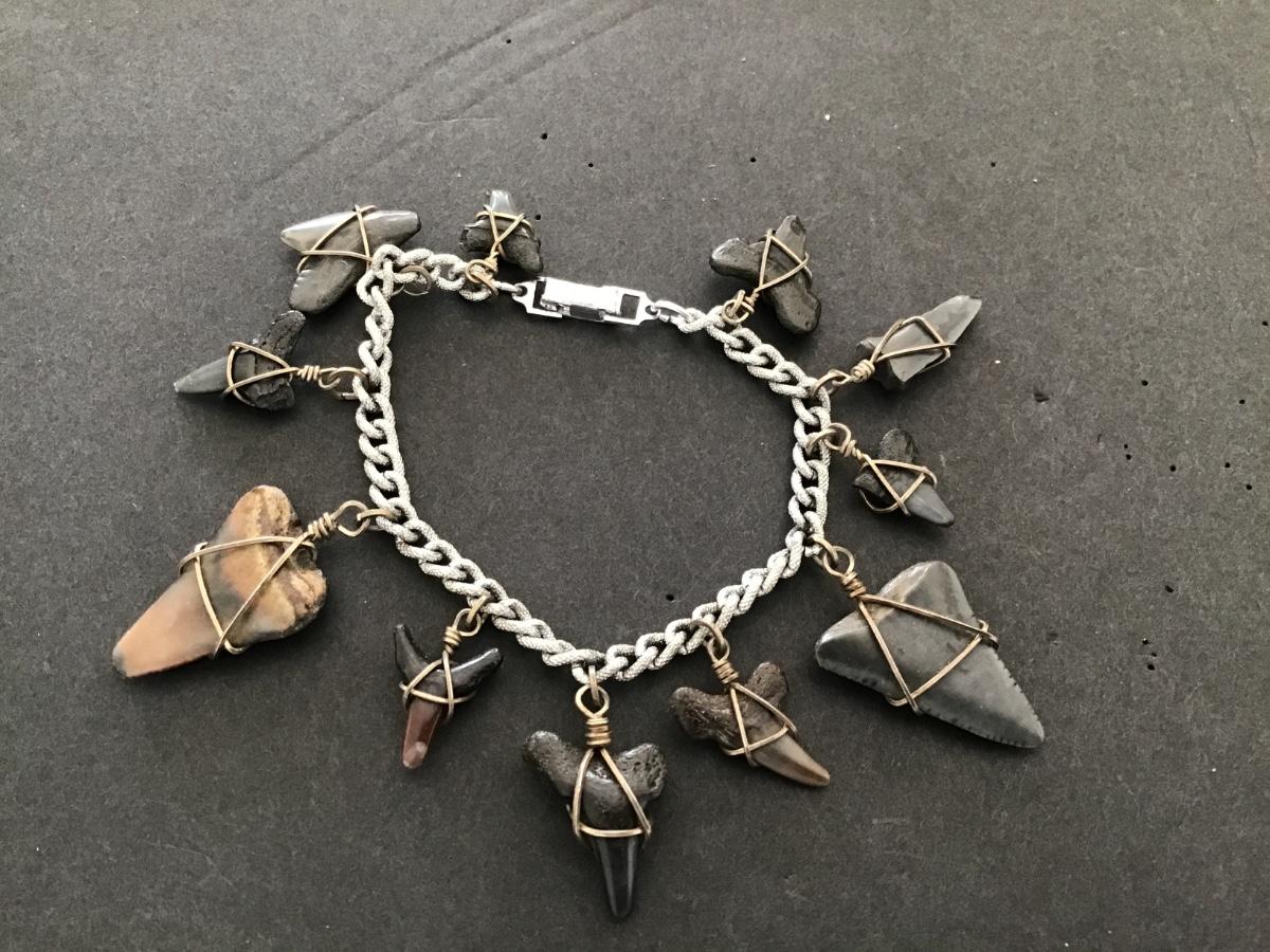 Vintage Germany Bracelet with Fossil like Shark Teeth