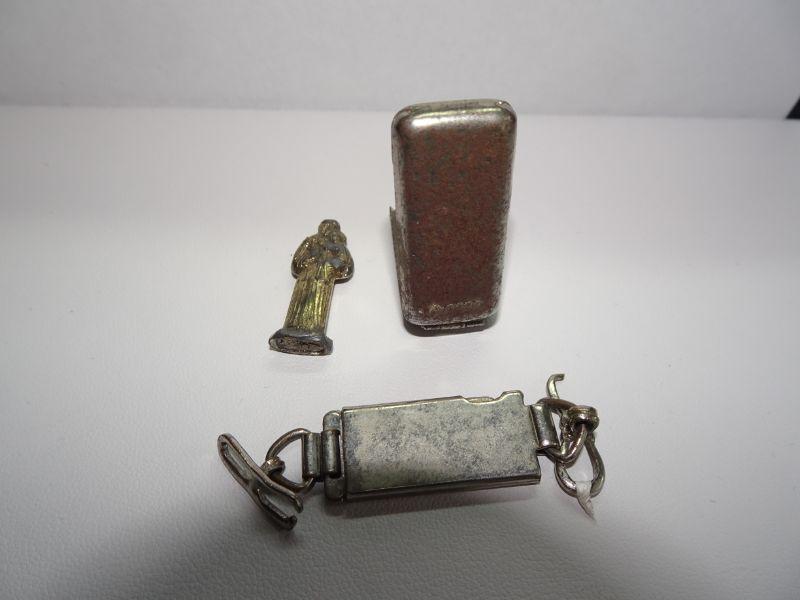 Vintage Germany Trench Art pocket Shrine Religious catholic statue, Wartime, Your Girls Key Ring?