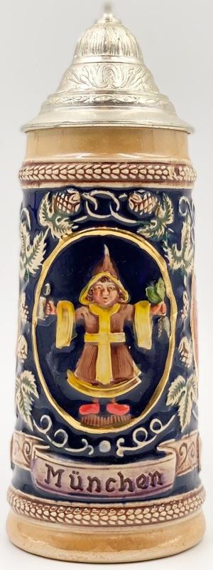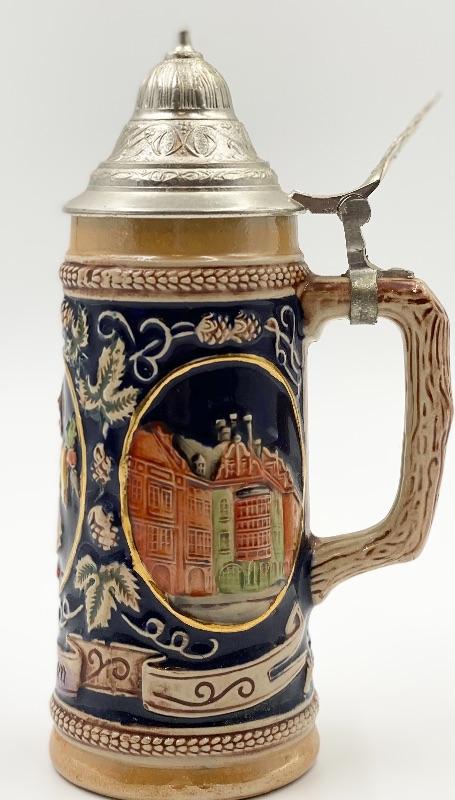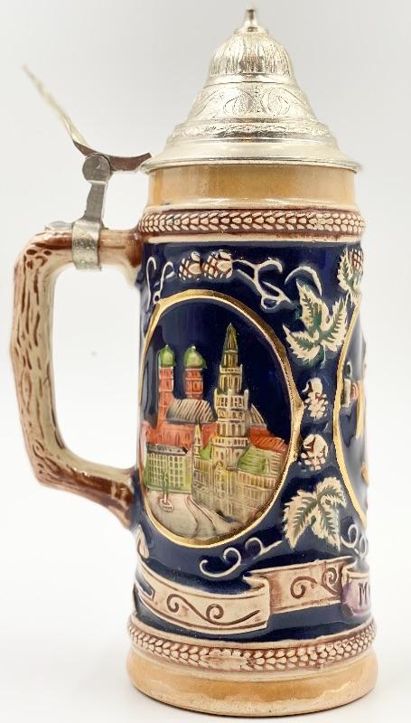 VINTAGE GERSIT GERZ GERMAN PEWTER LIDDED BEER STEIN “MUCHEN”