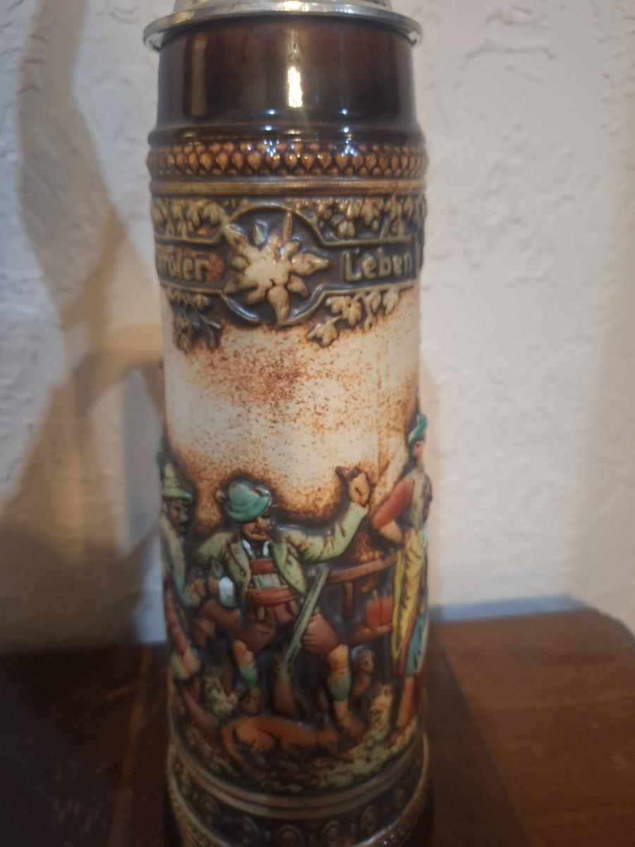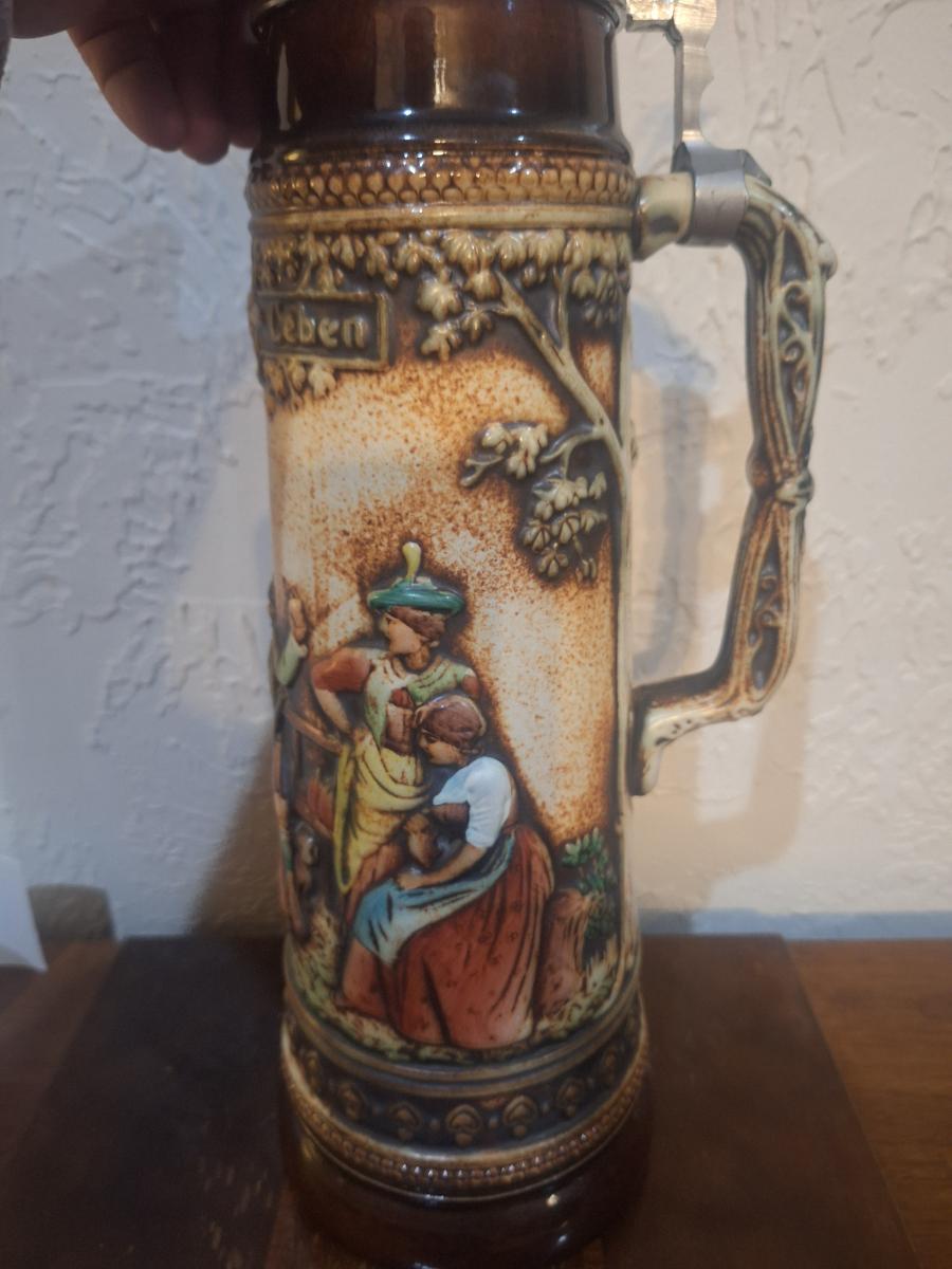 Vintage Gerz or Gerzit German beer stien with pewter lid. This one is taller than most.
