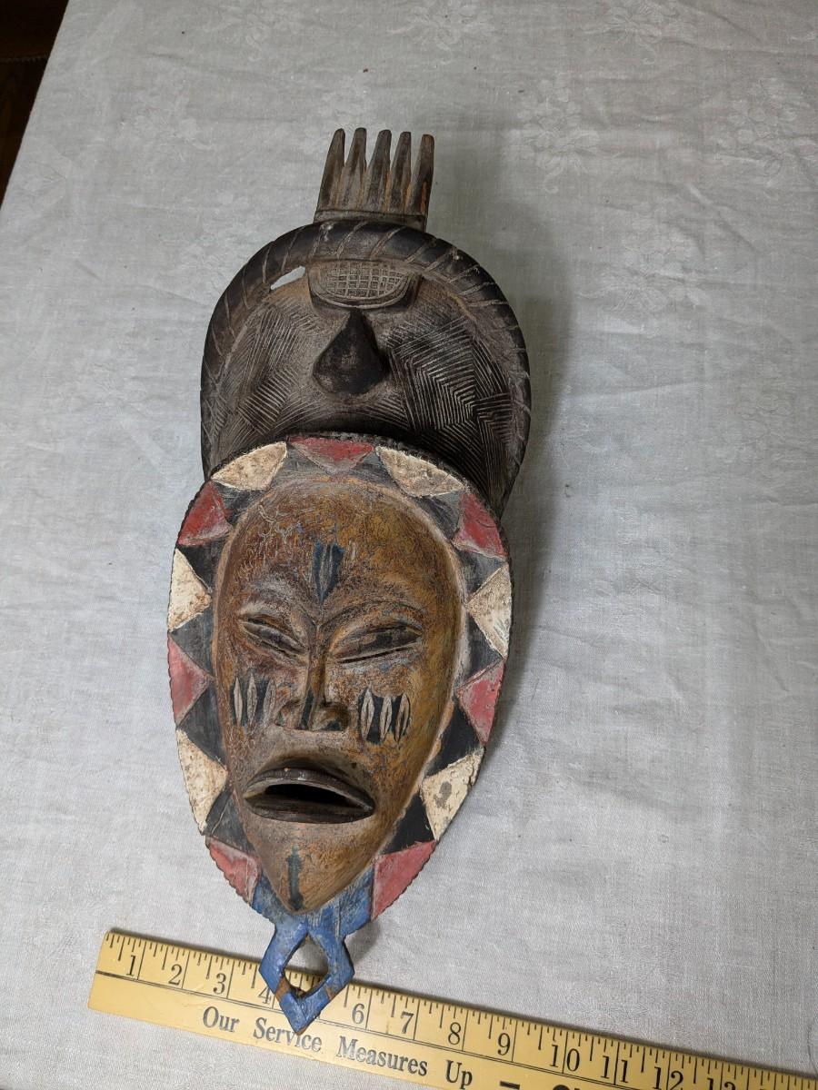 Vintage Ghana African Hand Carved Wooden Tribal Mask