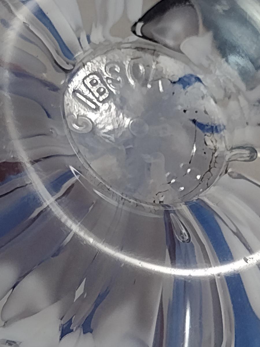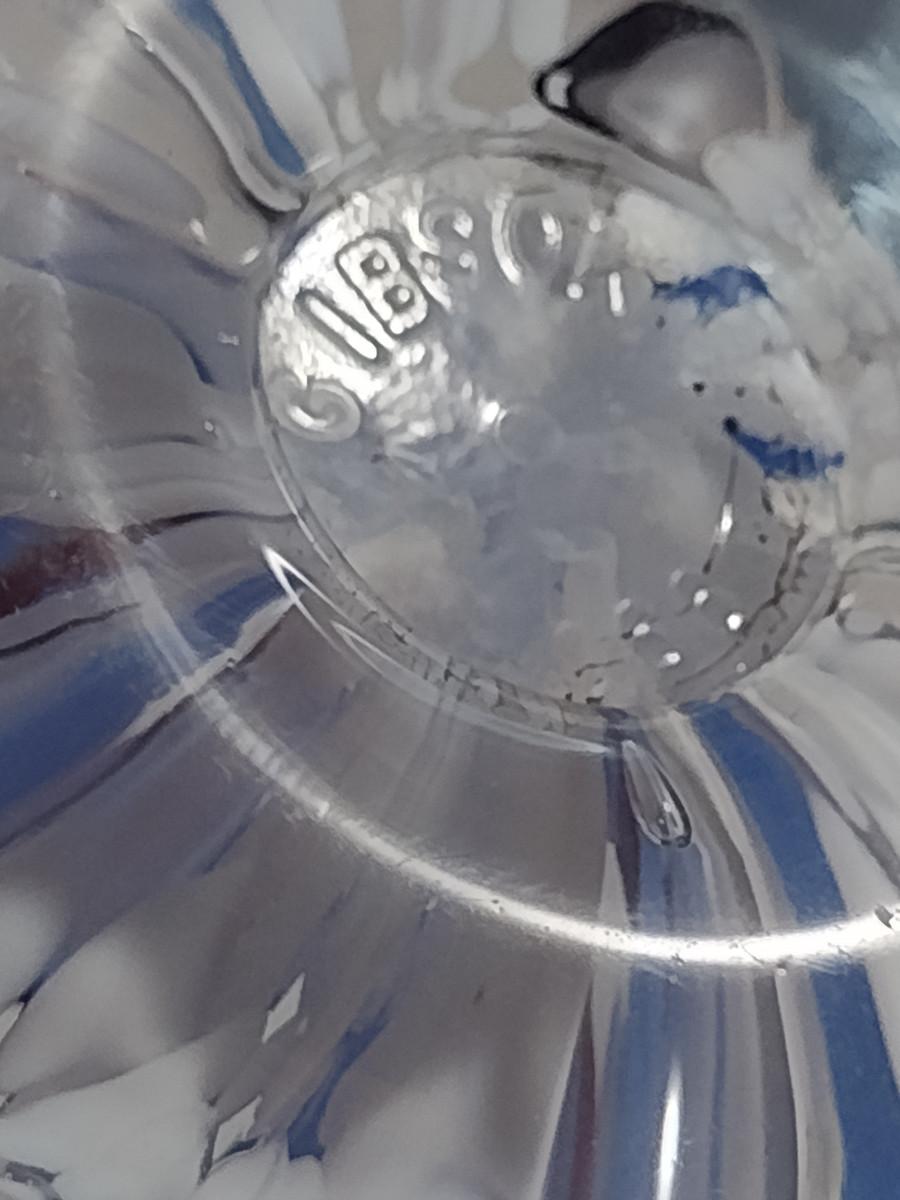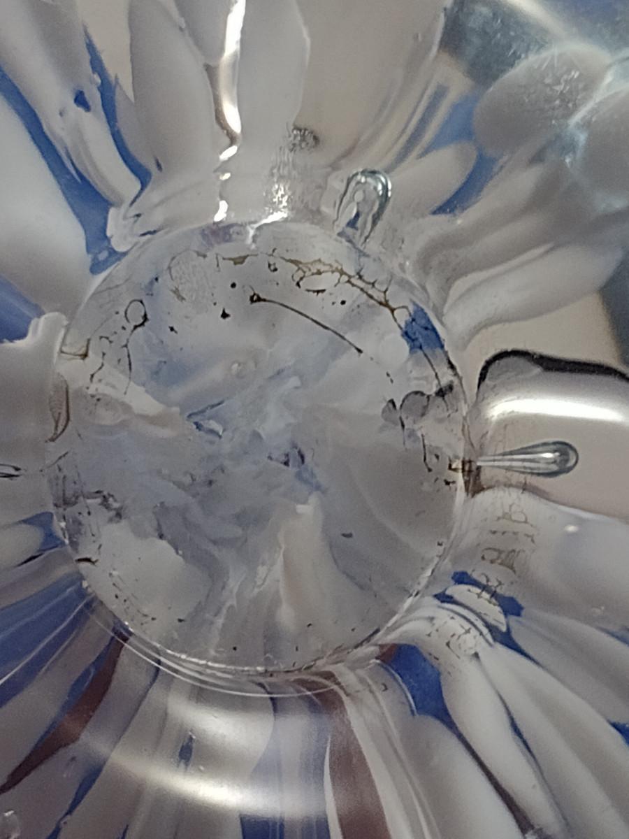 Vintage Gibson 1990 Art Glass Controlled Bubble Blue Floral Paperweight- Approx 2 3/4"