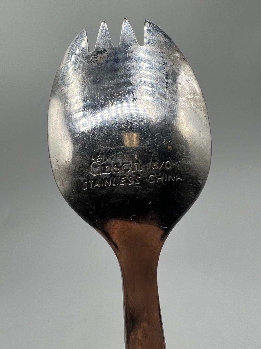 There are some light cosmetic scratches on the spork, but there is no significant damage and is in good collectible condition.