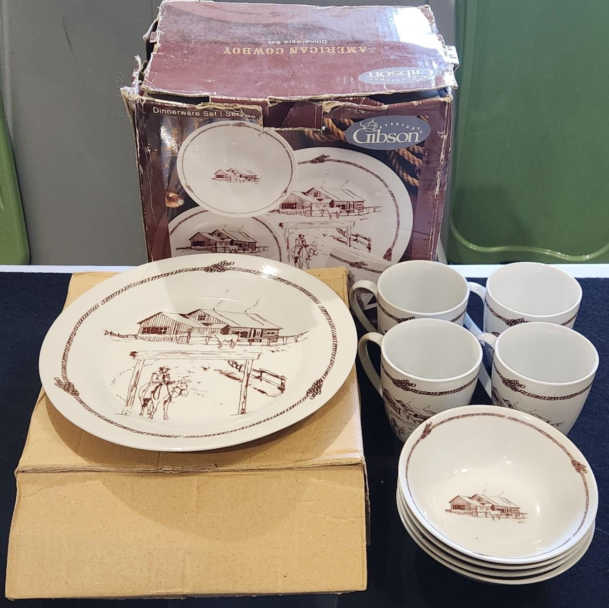 Vintage Gibson Western Cowboy Dinnerware set New