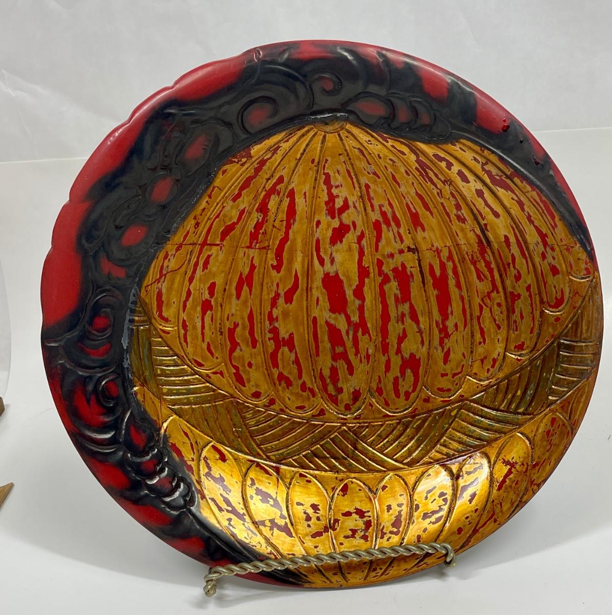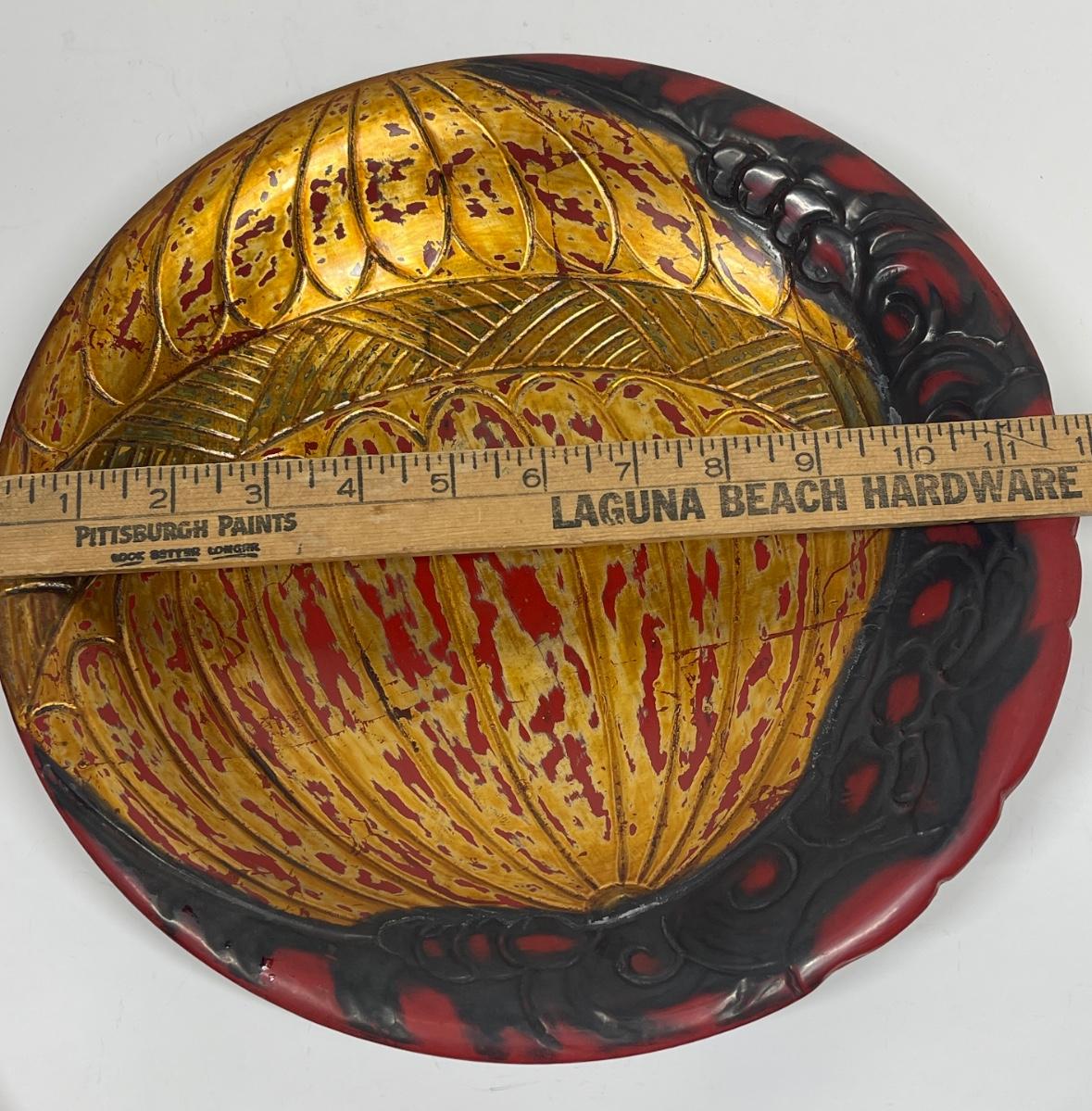 Wood Plate or Shallow Bowl for display Abstract Gold Black & Red