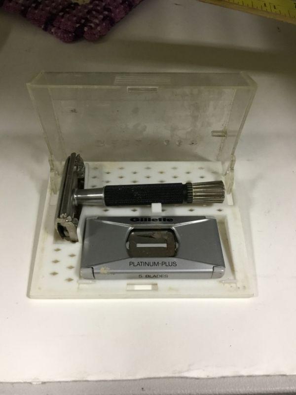 Vintage Gillette shaving razor with blades. Previously owned kit.