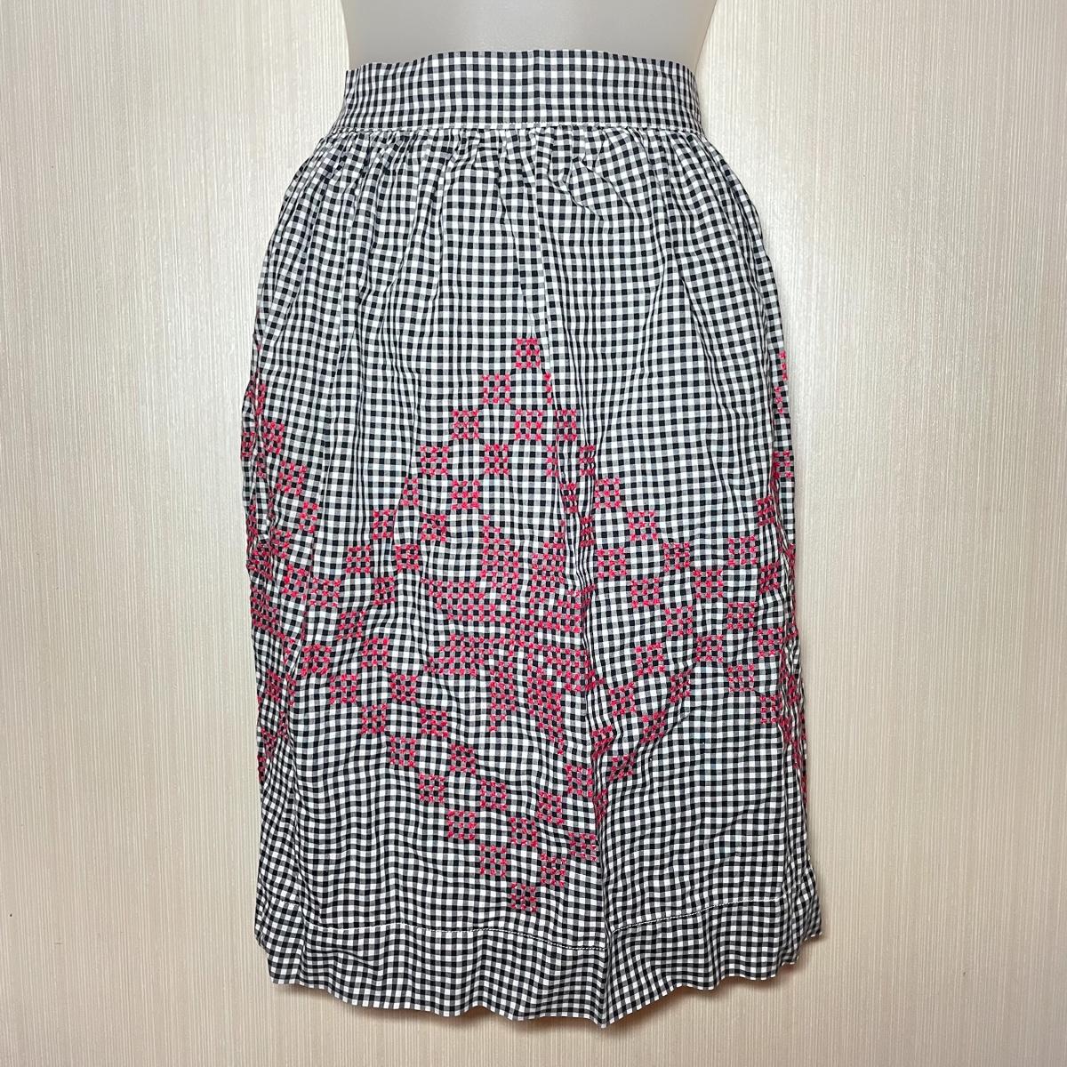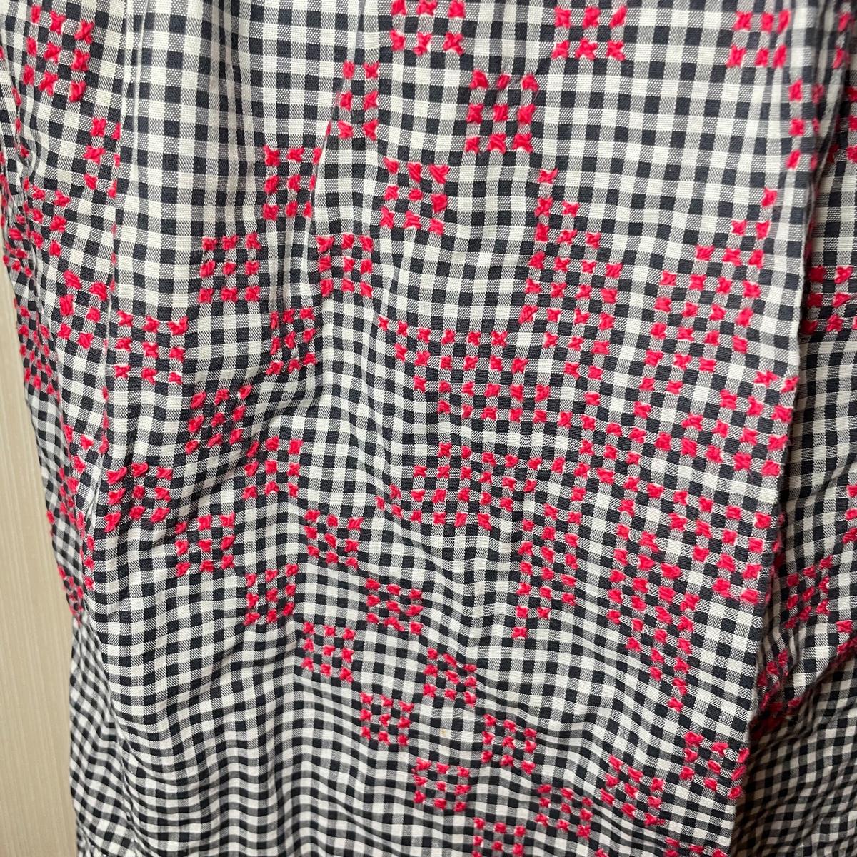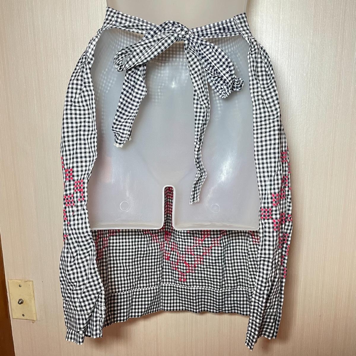 VINTAGE GINGHAM APRON W/ RED EMBROIDERY