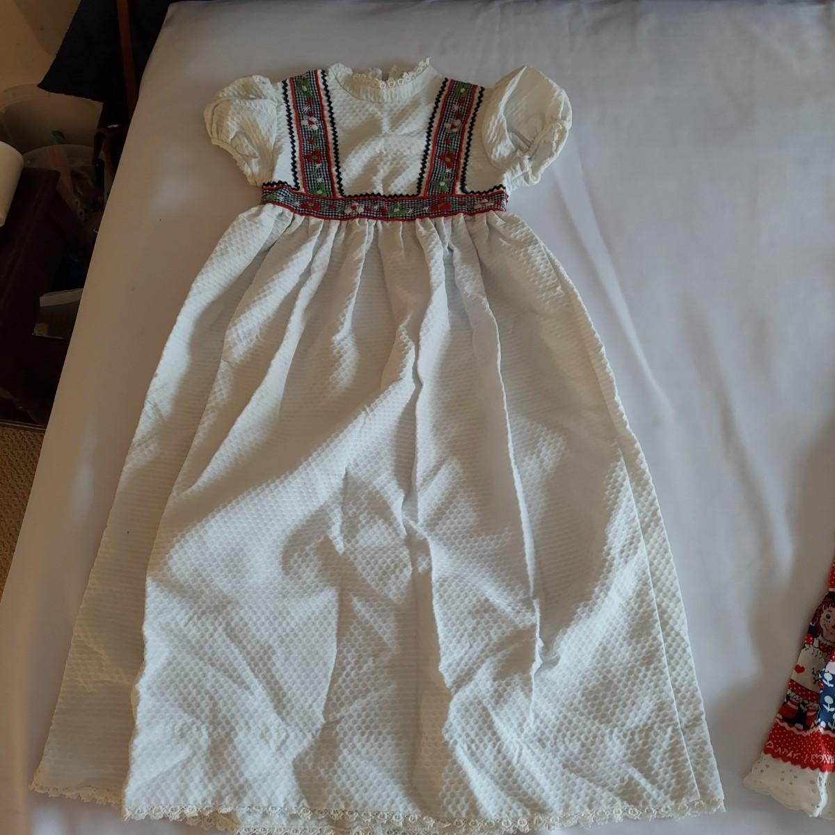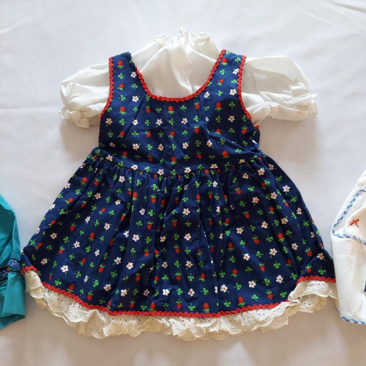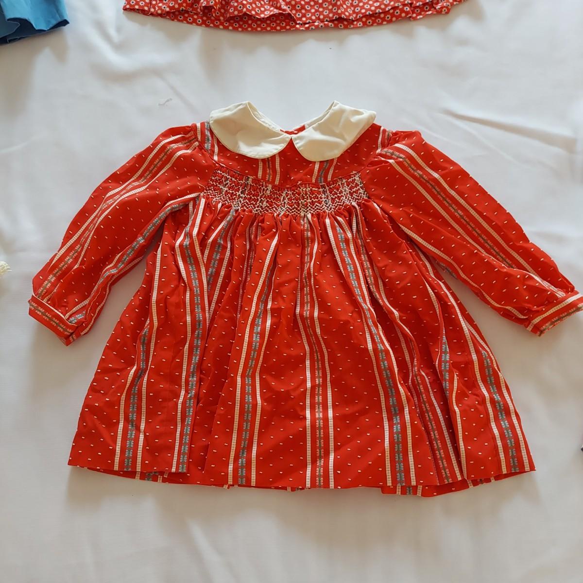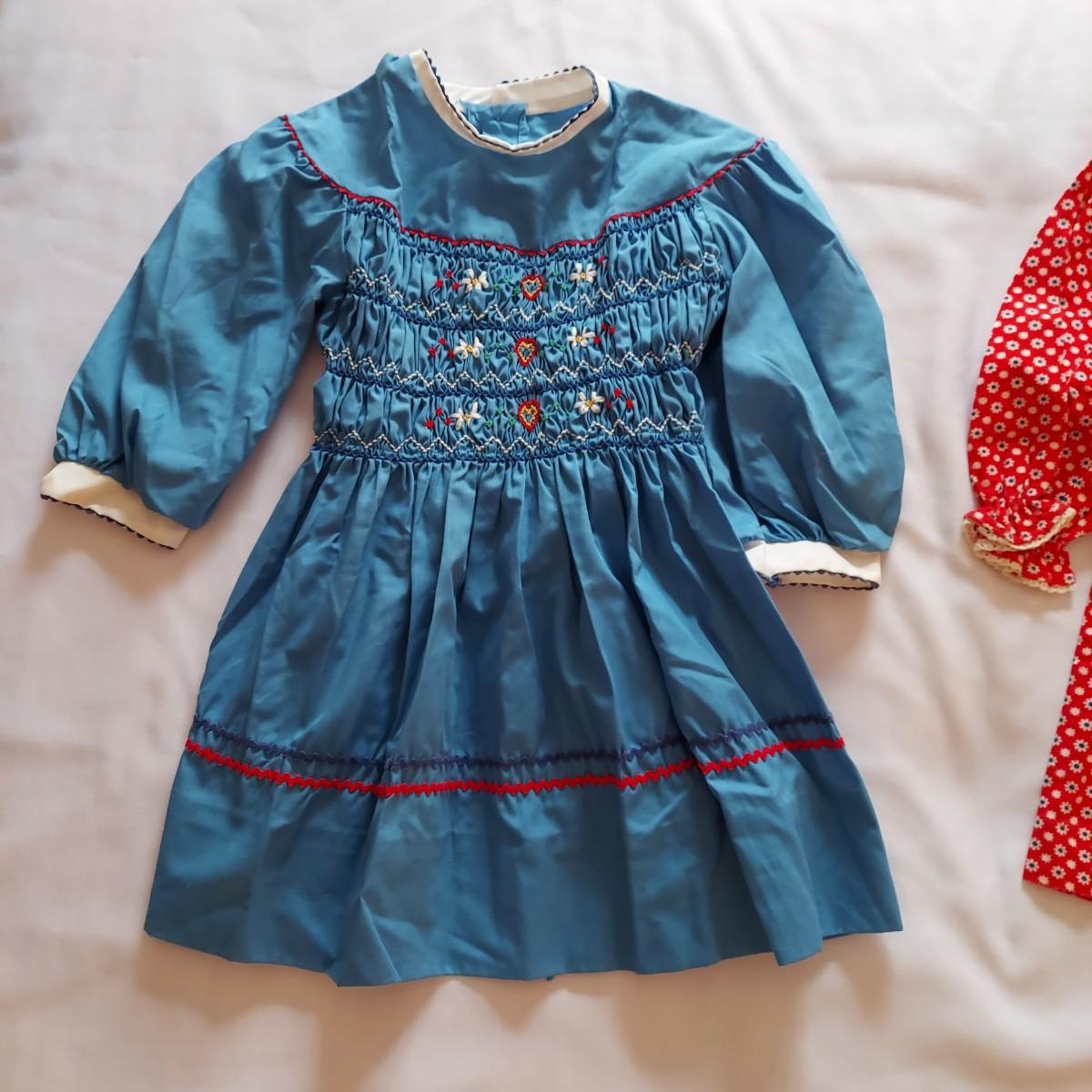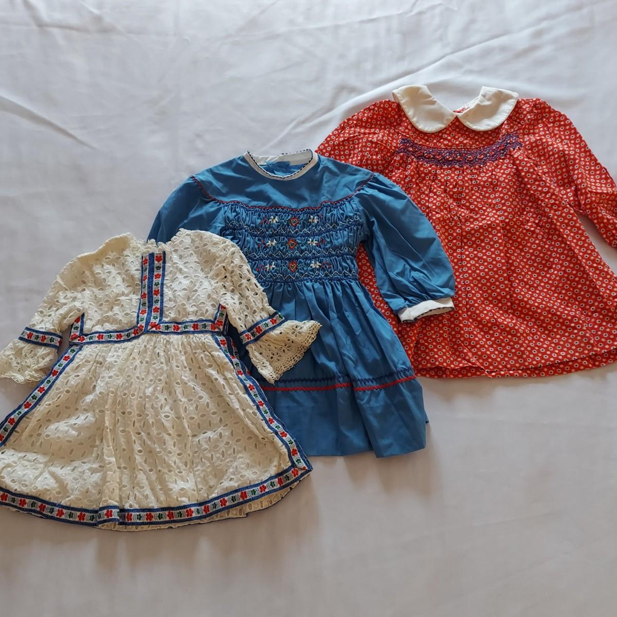 Lot includes 15+ vintage dresses in mostly toddler girl sizes, approximately 2-5T and some little girls small-medium. Several prairie dresses in early American styles. Some overall wear due to age on some pieces. Shipping available