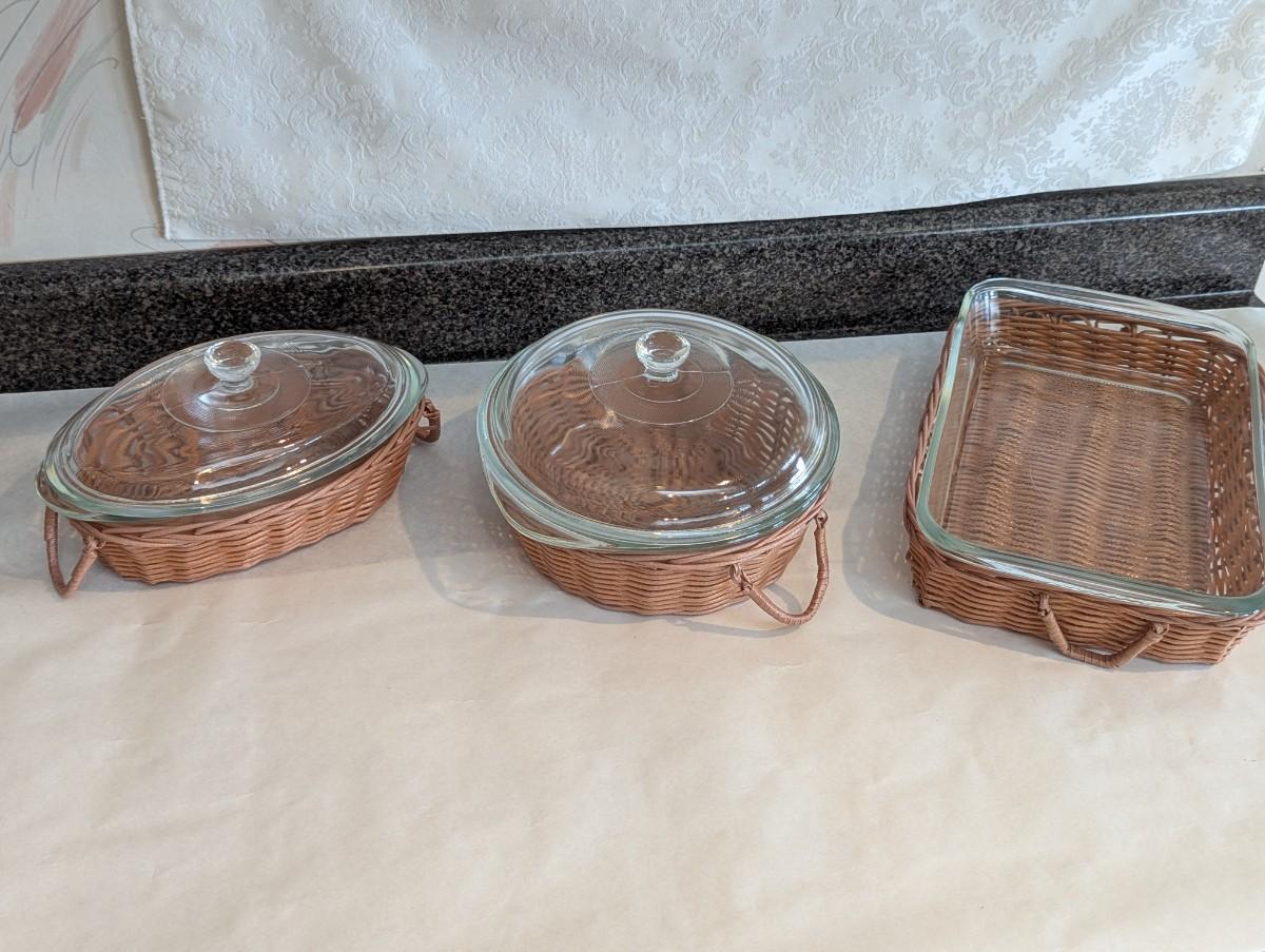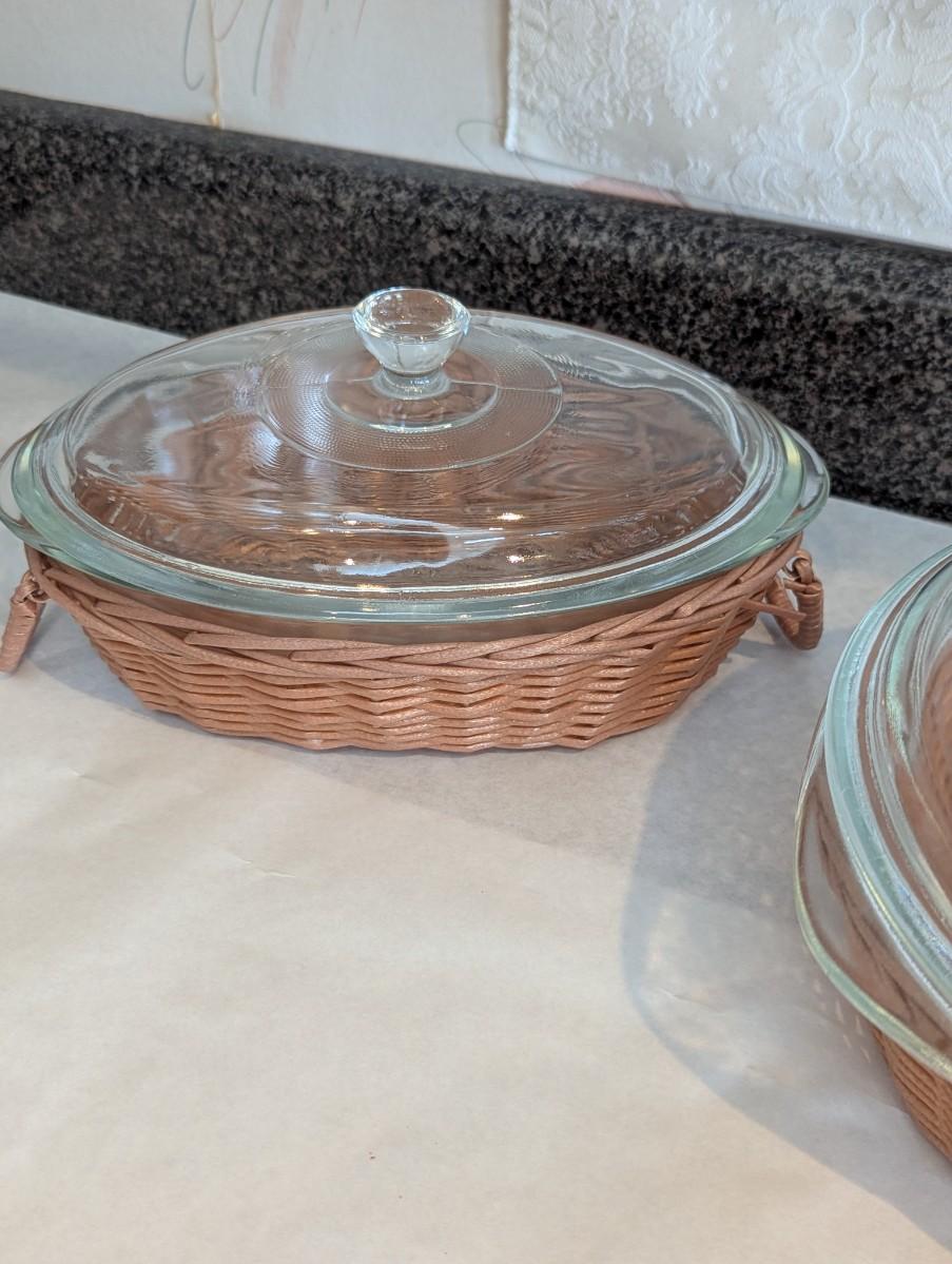 Vintage Glasbake Dishes With Lid & Baskets