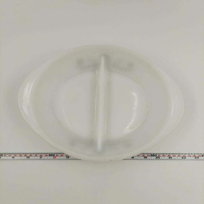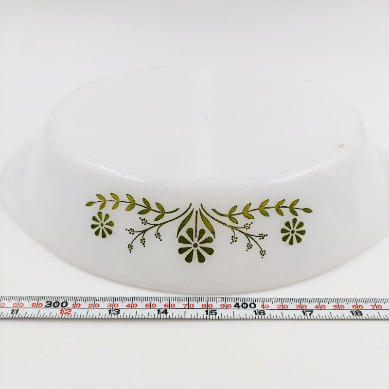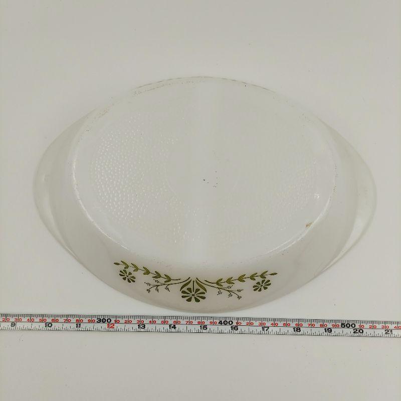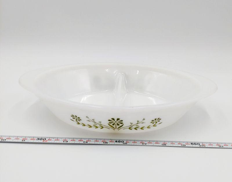 VINTAGE GLASBAKE DIVIDED CASSEROLE DISH - GREEN DAISY