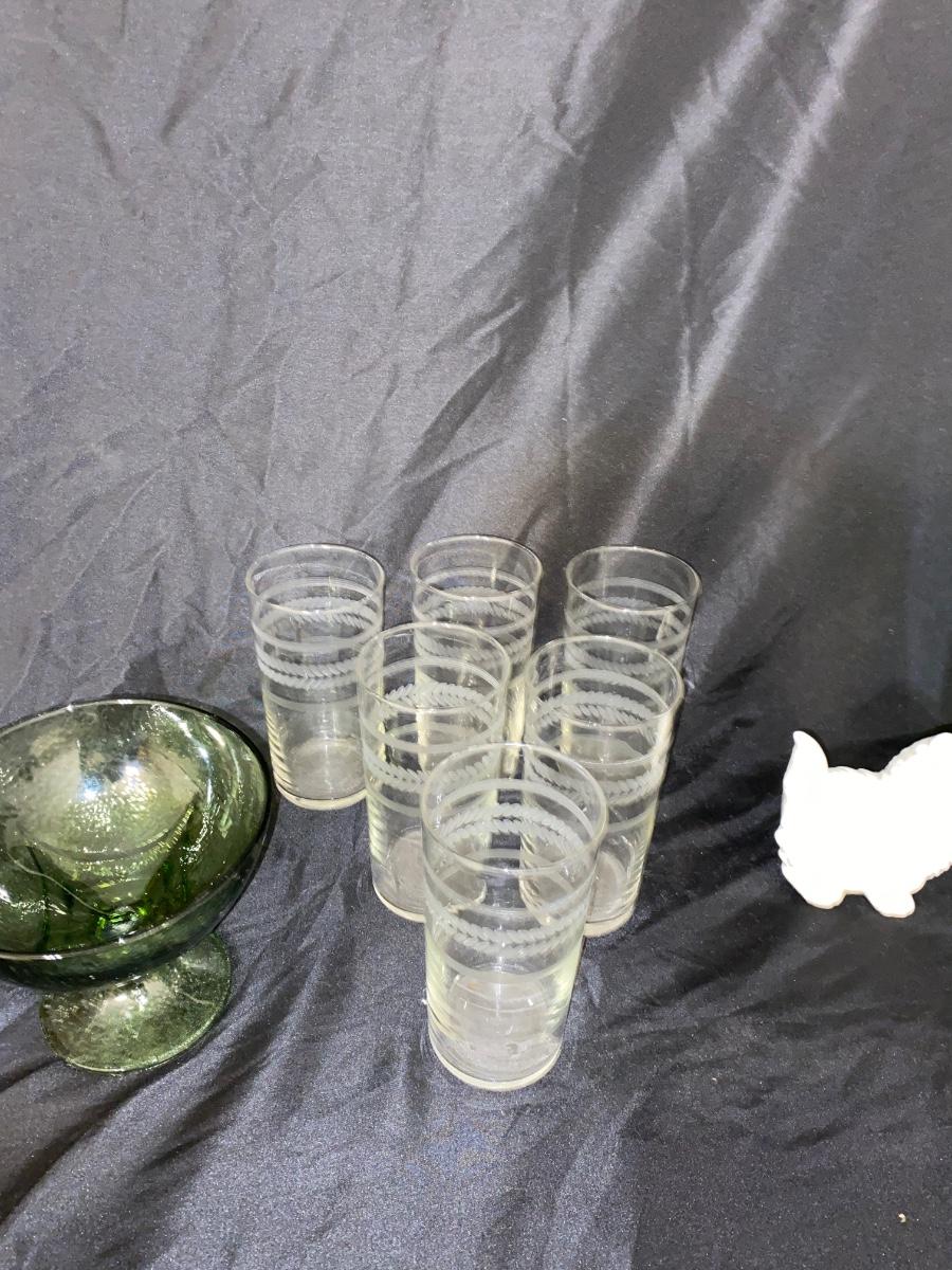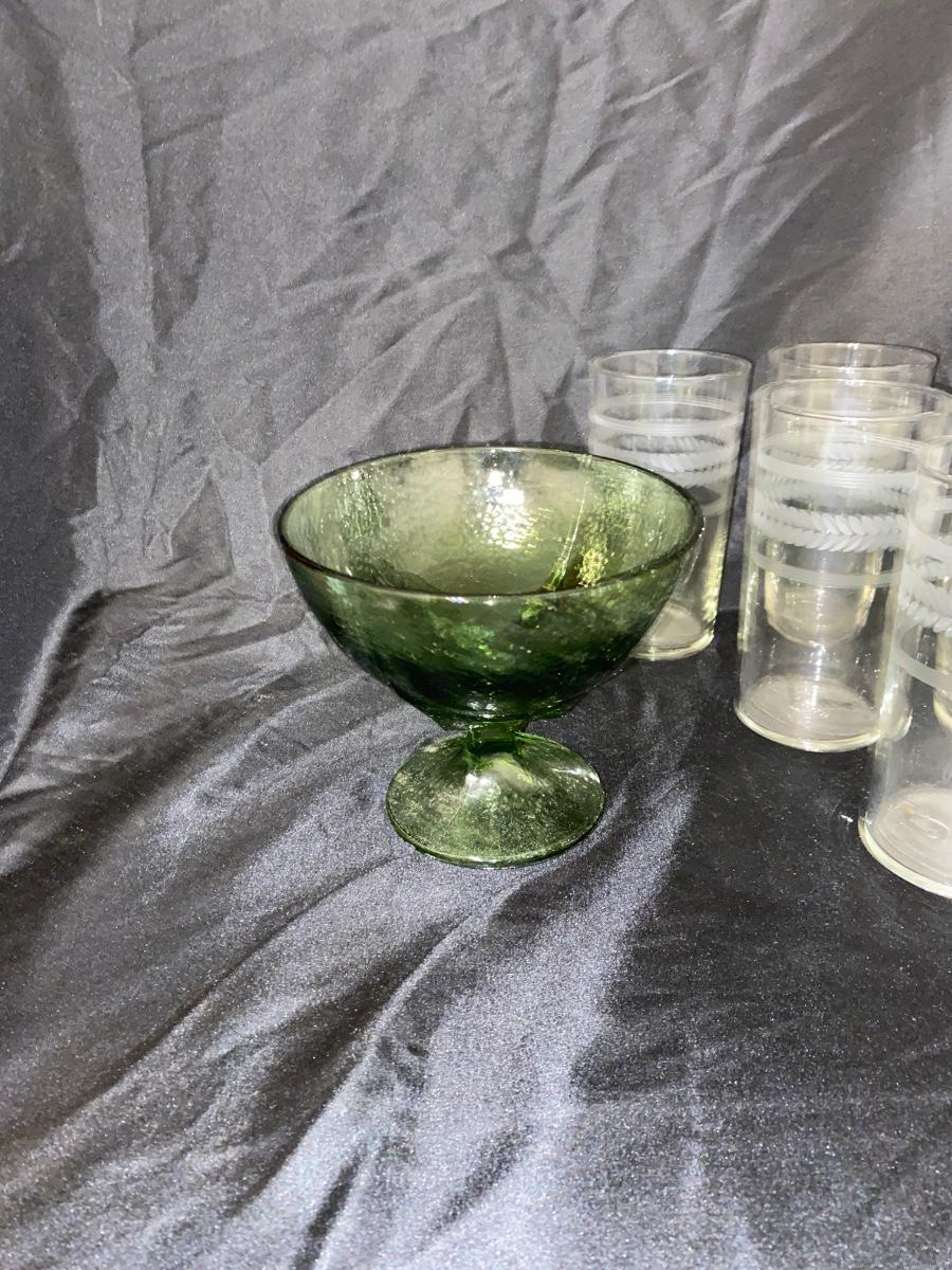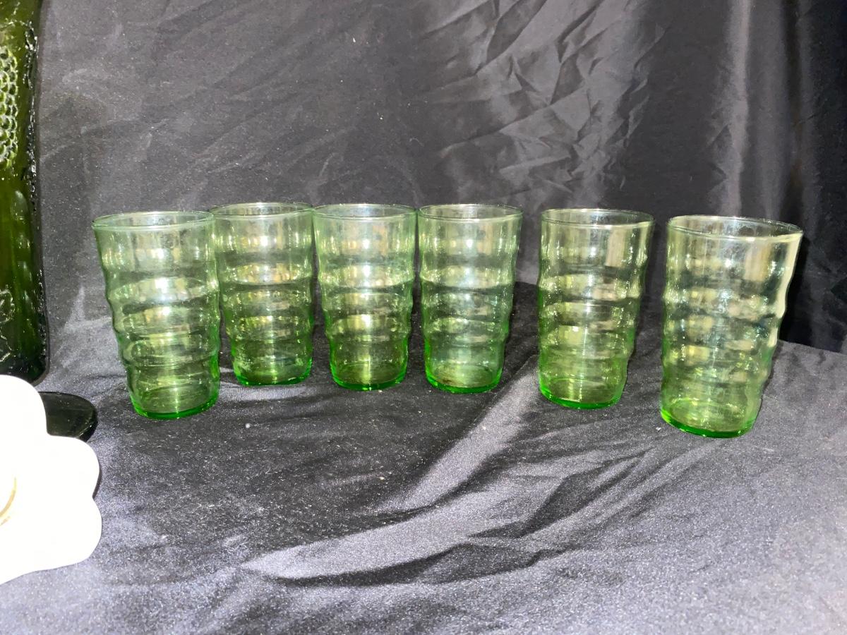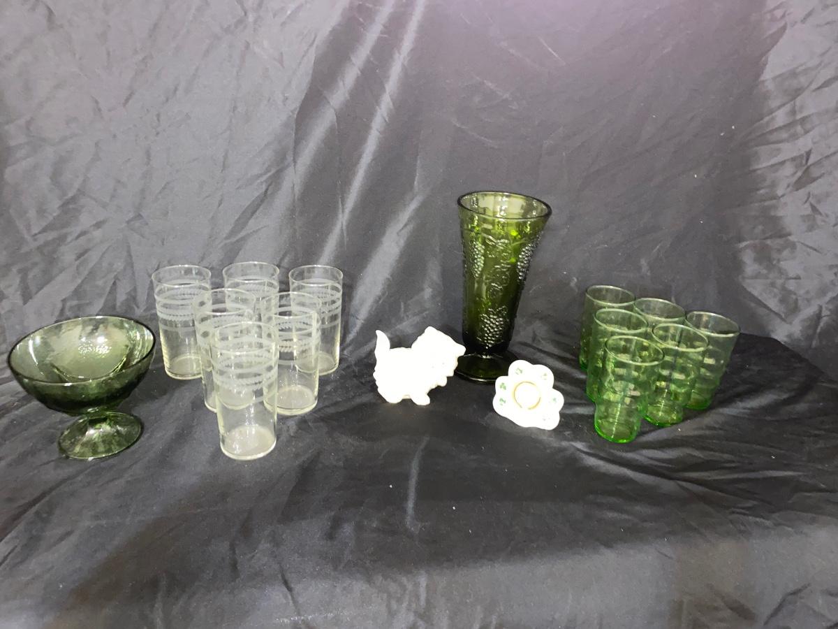 INDIANA GREEN GRAPE VASE, RETRO DRINKING GLASSES AND MORE